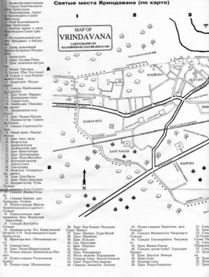 Посещение Вриндавана равноценно милости увидеть воочию Господа Хари. Вкушая еду во Вриндаване, живое существо обретает милость участия в подношении бхоги Господу Хари. Занимаясь во Вриндава-не ручным трудом, можно получить милость служения Господу Хари. Каждый шаг по Вриндавану равно-ценен многим и многим плодам паломничества в различные святые места.