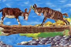 मैं-मैं करके वे दोनों लड़ने लगीं | लड़ते-लड़ते दोनों बकरियाँ नहर में गिर पड़ीं |