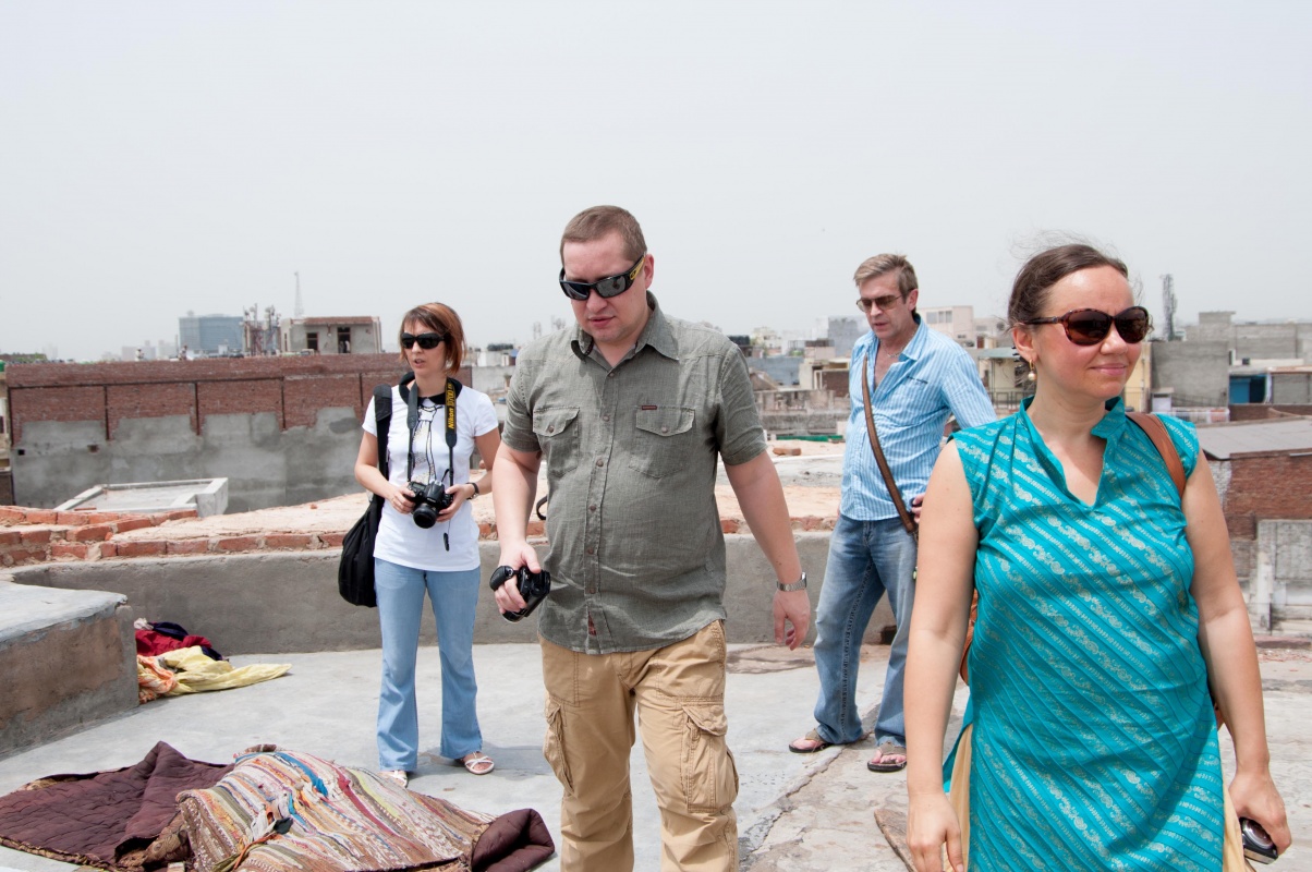 Сегодня у нас была прекрасная (если так можно назвать) прогулка по старому настоящему Дели, рулевым был опять замечательный Хорхе. Он показал такие места, что самим бы в жизни не найти. Ходили по узеньким лабиринтам старого Дели, поднимались на крыши хавели (старых домов с дворами). Эти заповедные крыши скрыты от глаз незнающих людей, Хорхе из нашёл сам. Смотрели с этих крыш на знойный жаркий старый город Дели.