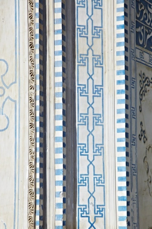 Вышеописанное древнее дерево приютило и нас, став пунктом назначения вместо спланированного озера. Милый и чистый оазис, с доброжелательной хранительницей Раей и ее помощником Алешей, которые напоили нас чаем и уложили спать в гостевом домике. Тут же, в процессе беседы с местным народом, выяснилось, что всего в 20 км отсюда, в городе Жаркенте есть очень интересная мечеть, отстроенная китайским мастером в начале 19 в. Приехав на след.день к мечети, мы очень тщательно ее обследовали, обнаружив кучу свастик, не только на стенах самой мечети, но еще и на более поздних постройках. Внутри самой мечети — изображения скрещенных Ваджр, узлов сансары и кучи свастических узоров. (По приезду, мы изучая историю этой мечети, так и не наткнулись на замечания о таких очевидных совпадениях. Видимо, предыдущие искатели свастик не искали).