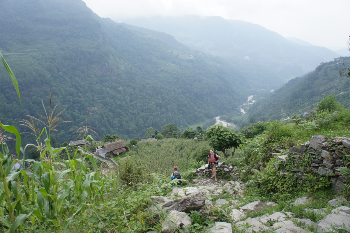 Вчера пришли в деревню Толка.Здесь тоже знакомый гестхаус с хорошими людьми и вкусной едой,он отличается от всех наиболее европейским дизайном и находится в очень красивом месте с восхитительным видом на горы - и называется "Намасте турист Толка". Когда немного очухались,отодрали от ног всех пиявок,приняли душ и обработали все раны, нас накормили восхитительным обедом - овощи карри по 180 руп.,кукурузные лепёшки с мёдом здесь по 130 руп.,веч.фрайд райс по 260.