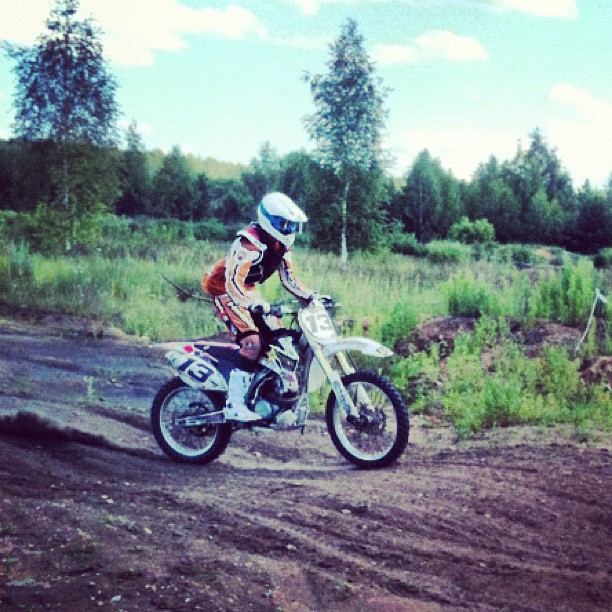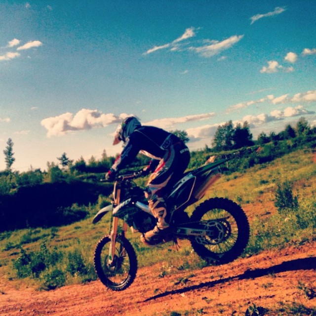 Мой друг паша придумал новую забаву. Видимо насмотревшись видеороликов в ютубе как бравые парни на Ямахах и КТМах вваливают по бездорожью, высоко прыгая на трамплинах и управляются с мотоциклами как с игрушечными, решил во что бы то ни стало купить кроссача. И купил, а так как одному ездить в карьер на тренировки опасно, некому помочь если ноги сломаешь, и к тому же мотоцикл надо заворотить на прицеп после покатушек, он стал звать меня с собой. В последствии и я один раз сев на его 250кубовую ямаху заболел этим видом спорта. Снаряд я пока себе не купил, катаемся на его мотоцикле по очереди, к тому же там часто приходится отдыхать. Одно могу сказать, очень полезное занятие, если увлекаешься мототуризмом, начинаешь правильно чувствовать мотоцикл и учишься управлять им на бездорожье. Правда пейзаж в карьере совсем не меняется.