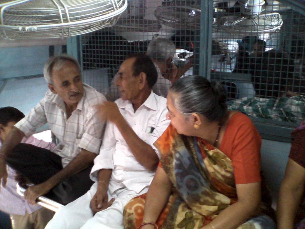 Оказалось не так просто попасть на этот поезд, со станции ЧечГейт, надо ехать на электричке до станции ............, а потом на рикше до междугороднего терминала. Мне досталось место на верхней полке общего вагона представляющей собой решетку сваренную из хромированных труб диаметром 3/4". И надо сказать мне крупно повезло, на следующей остановке народу набилось столько, что они торчали из входной двери, а разносчики чая все не унимались. Со мной сидели два крупных индуса и сначала они вовсе не хотели меня пускать, они вообще никого не хотели пускать на свою полку, мотивируя тем что они крупные, нет не толстые, а рослые и крупные. Но языковые проблемы обрезали возможность возражать, я просто показал что напротив сидят четыре человека и мы вполне можем разместиться втроем. Парни поводили носами, но освободили место для меня. За пять часов мы подружились, общаясь через переводчика, которым был коммивояжер, торговый представитель фармацевтической компании из Сурата, очень полный, добрый дядька. В итоге они даже выбили мне место на нижней полке с мягким сиденьем вместо решетки из труб, я не постеснялся сесть у окна. В Ахмедабад поезд прибыл по расписанию вопреки моим ожиданиям в 2:00, а в 5:25 был следующий поезд в город Бхавнагар, откуда я планировал автобусом доехать до Аланга.