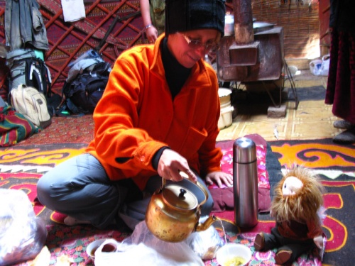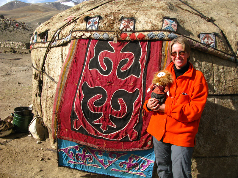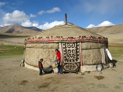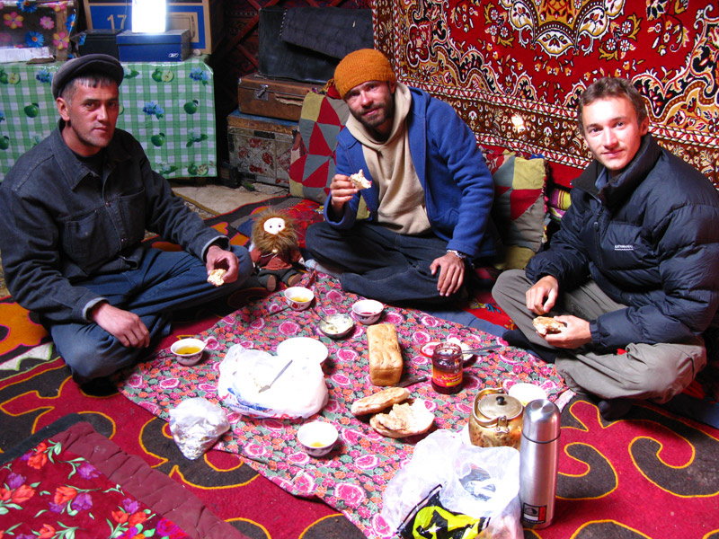 Поехали. Первая остановка - юрты в горах на высоте 4300 метров. Здесь летом, почти в полной изоляции живет и неплохо живет семья скотоводов-кочевников. Это место называется Ак-Телек, "Белый Сон". Здесь так высоко, что кажется, будто облака ходят пешком по земле.