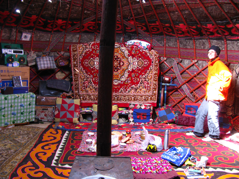 Вернулись очень уставшие, легли спать в юрте. В темноте юрта кажется мини-вселенной. В дыру в потолке видны звезды. Звездочный отель...