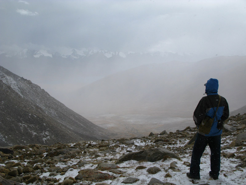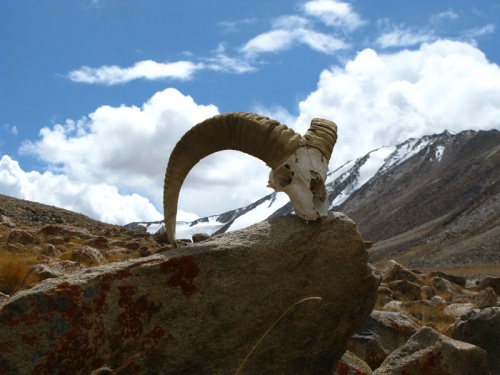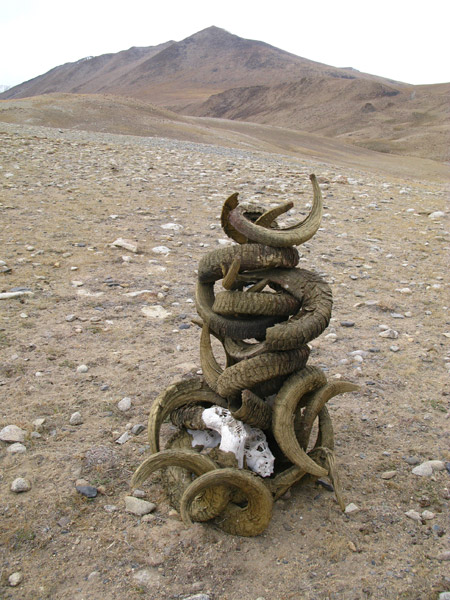 Бросили вещи и пошли пешком на перевал Бел Айрыг (4800 м.), откуда виден Малый Памир, Афганистан и, возможно, Пакистан. По дороге, высоко и далеко на склоне, видели архаров или диких горных баранов Марко Поло, которые впервые были описаны этим знаменитым путешественником, когда он проходил по этим местам по пути в Китай. Архары приходят сюда из Афганистана зимовать. Тут их и поджидают охотники...