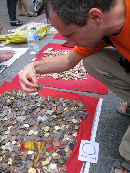 А для чего эти горшки?Для денег. Для чего еще? :) Можно наменять кучу маленьких монеток и пополнить все горшки. В храме раздается непрерывный звон монет. Странное сочетание с Буддой, уходящим в Нирвану. Но таков наш противоречивый мир.