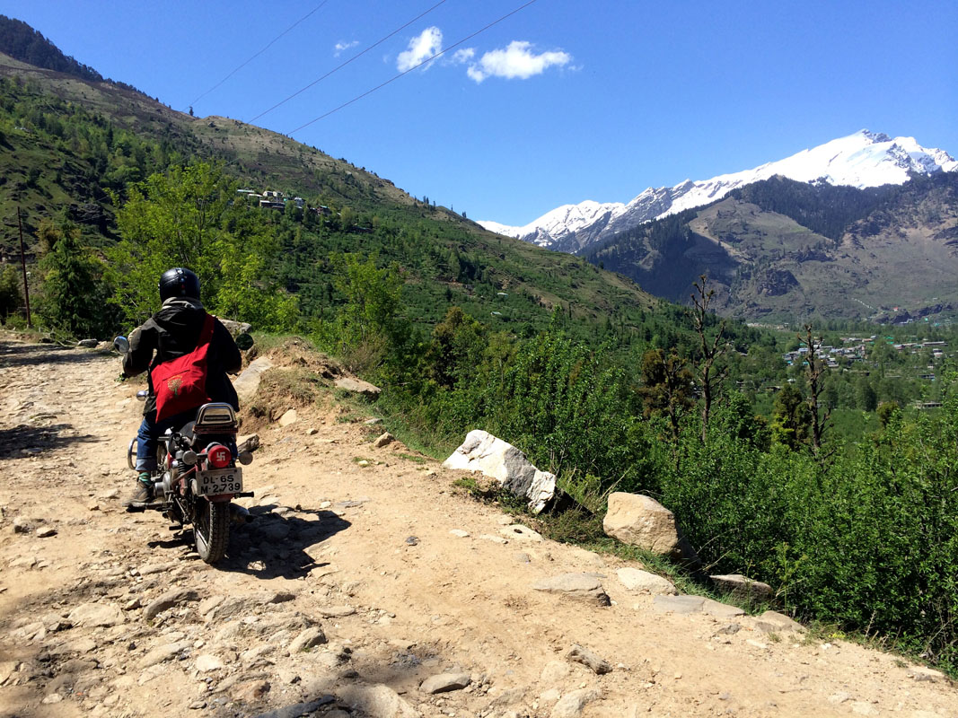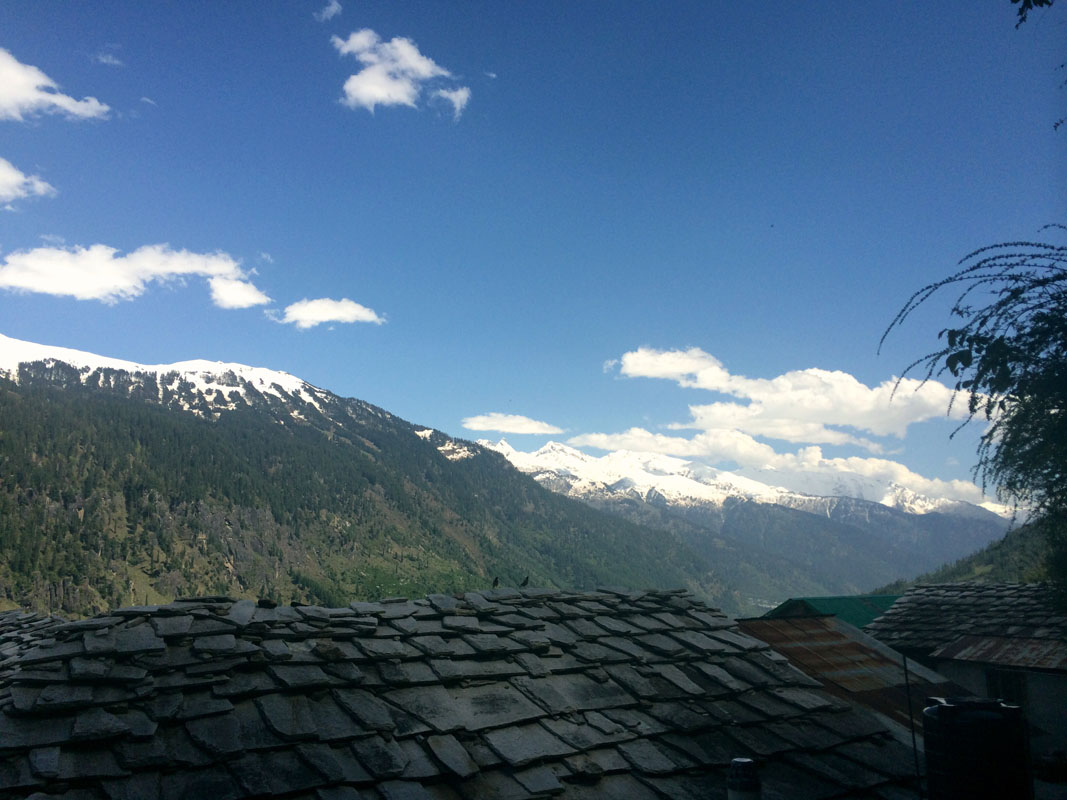 Погода снова располагает к вылазкам в горы. Сухо, солнечно, воздух днем по-настоящему летний. Мы седлаем байк, и устремляемся в видимость какого-то поселения, висящего высоко на противоположном склоне холма. По подвесному мосту переезжаем в местечко под названием Буруа, и наш нанди-танк преодолевает бездорожье сквозь камни и ручьи, пока мы не упираемся в конец дороги. Я думала, здесь уже нет жизни. Мы бросаем моц, взбираемся на тропинку и попадаем в аутентичную деревню с домами мазанками на крутых склонах; петляем по узким самодельным улочкам; минуем местечковую школу с детворой, сидящих кружком на полу деревянного настила терассы и усердно записывающих что-то за учителем; здороваемся с местными, приглашающими на чай и с любопытством провожающих нас взглядом. Женщины в шерстяных химачальских сари стирают во дворах, просеивают рис, смеются, собирают хворост в корзины за плечами; мужчины носят камни для строительства домов, курят на теплых крышах жилищ, спорят, выгуливают огромных белых яков. Мы словно попали в другое измерение, маленький уютный мир, пропитанный теплом весенней земли и свежестью таких близких белых гор. Это, наверное, самое высокое поселение в долине Куллу. Настоящая гималайская Индия, нависающая над туристическими гетто Васишта и Олд Манали. Мы и не догадывались об их существовании, знают ли они, что там внизу в долине :)? Incredible India.