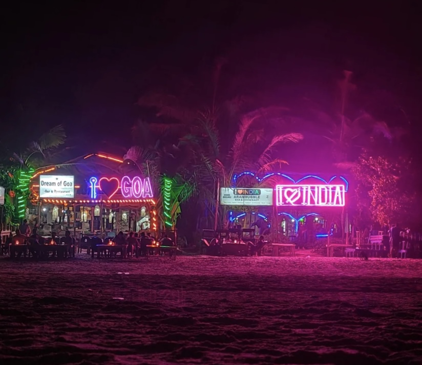 Вечером на пляже в Арамболе полный сюр. Михаил Круг в бич-шеках в почете. Иначе пакетники не переварят фиш-тандури.