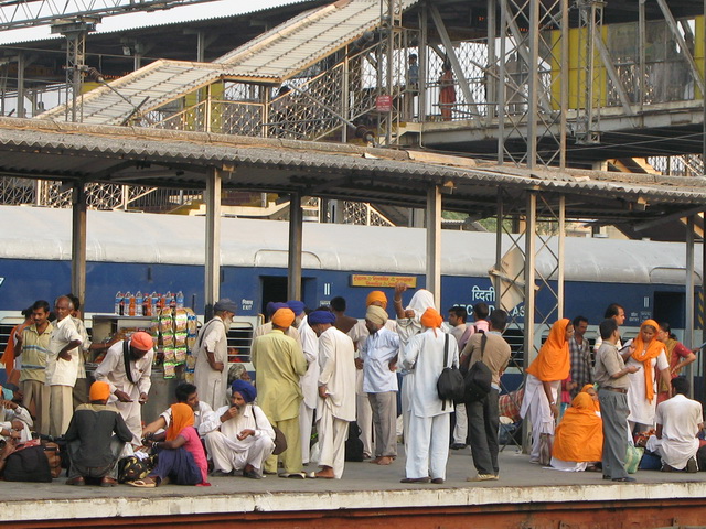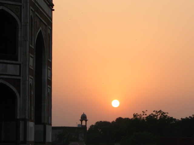 А вот там я как раз сегодня ходил. Решил посетить Хумаюн, поехал на автобусе. Автобус довез до Низамуддина (Ж/Д станция), с другой стороны. Перебрался через пути и оказался аккурат с противоположной стороны Хумаюна, там дорога идет вдоль Ж/Д, и упирается в мечеть (действующую). Прямо у путей стоит заброшенная гробница. На куполе сохранилось много синей эмали. В нее я не полез, т.к. смеркалось, и хотелось таки попасть на территорию Хумаюна. Которая, как подобает гробницам такого масштаба, обнесена крепостной стеной. Поскольку было непонятно, как ее обойти, пошел вдоль стены и дошел до места, где проводились какие то работы и сверху навалили целую кучу битого камня. Решил ее использовать для преодоления стены. Вскарабкавшись примерно до середины кучи, она вдруг поползла вниз. Я как по идущему в противоположную сторону эскалатору, весь в пыли и счастливый, оказался наверху. Там меня встретили «реставраторы». Я спросил у них, что это у вас за гробница тут стоит у железной дороги. Ответили – мечеть. Ну, пускай будет мечеть. Уже встречались мечети с надгробиями внутри. Один из рабочих, видно старший, стал мне усиленно и горячо объяснять на хинди, чем они тут занимаются, ничуть не смущаясь, что я ничего не понимаю. При этом он все время нюхал клей типа «Момент», налитый в кулаке. Сфотографировались на память, и я ступил на территорию Мавзолея. Не знаю почему, но немного волновался. Я там был два года назад, тогда от этого места остались самые сильные воспоминания. Второй Тадж, но все как то серьезнее, старше. Внутри, посередине, стоит единственный саркофаг из белого мрамора. Высокий и стройный. Походил вокруг, солнце уже село и все стало тревожно красным. Встретил еще пару запоздалых туристов из местных. Зашел еще к надгробиям в пределах. Совсем стемнело и внутри стало ничего не видно. Самое интересное, что с территории никто не выгонял. Сам ушел. На автобусе добрался до Ринг-роуд. Автобусы обычно не останавливаются до конца, если никто не садится. Заботливые индийские пассажиры помогают спрыгнуть. Типа командуют, «погоди, погоди, еще рано, а теперь давай, сигай!».