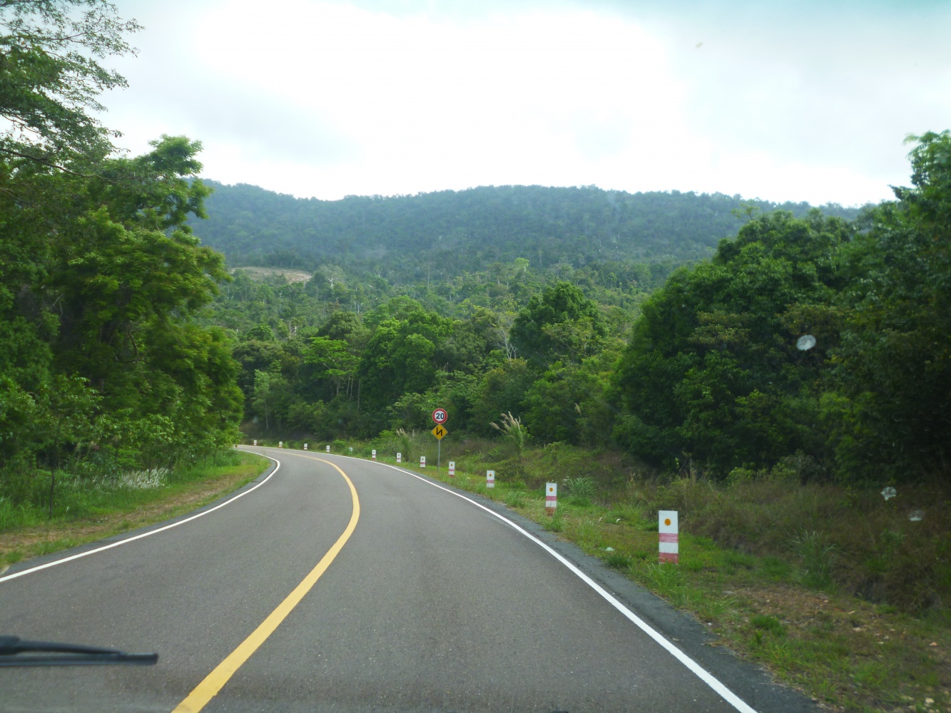 Я, конечно, сидя на переднем сидении и увидев эту дорогу, сильно пожалела, что не взяла байк. Дорога прям для меня. Подъемы-спуски мягкие, перепадов высот нет, асфальт ровненький, пропасти далеко от дороги,повороты крутые, но я бы справилась потихоньку. А потом увидела человек 50 кхмерских то ли правда мотогонщиков, то ли любителей на крутых широкошинных байках, увидела, как они группой конкретно фигачат по встречке, как с нее же вылетают, и подумала, может бог и уберег...
