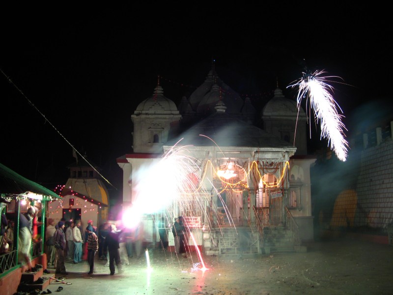 Праздник длится пять дней, три вечера из которых отмечаются иллюминацией и феерверками. Первый из таких вечеров я застал в Уттаркаши, приятном небольшом городе в предгорях Гималаев. Было немного старнно видеть на улице довольно много подвыпивших людей - в этих краях отношение с алкоголем довольно свободные, видимо, из-за холодного климата.