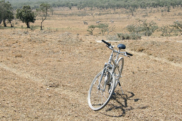 После легкого завтрака я отправился за арендованным велосипедом. Выданная мне двухколесная машина была изготовлена известной тайваньской фирмой, но выглядела не очень. Похоже, ее добрый десяток лет нещадно эксплуатировали экстремалы из Европы. Затем, чтобы не отдавать на металлолом, немного починили и послали в качестве гуманитарной помощи голодающим детям Африки. Дети обменяли велосипед на банку консервов, и теперь с лысыми шинами, сломанными задним амортизатором и переключателями скоростей, он верно служил новым хозяевам, принося им целых шесть евро в день за сдачу в аренду. Впрочем, мое мнение о велосипеде быстро изменилось, когда я оседлал его и отправился в сторону национального парка. По шоссе и даже по гравейке он ехал хорошо. Значительно лучше, чем новые велосипеды европейского или китайского производства.