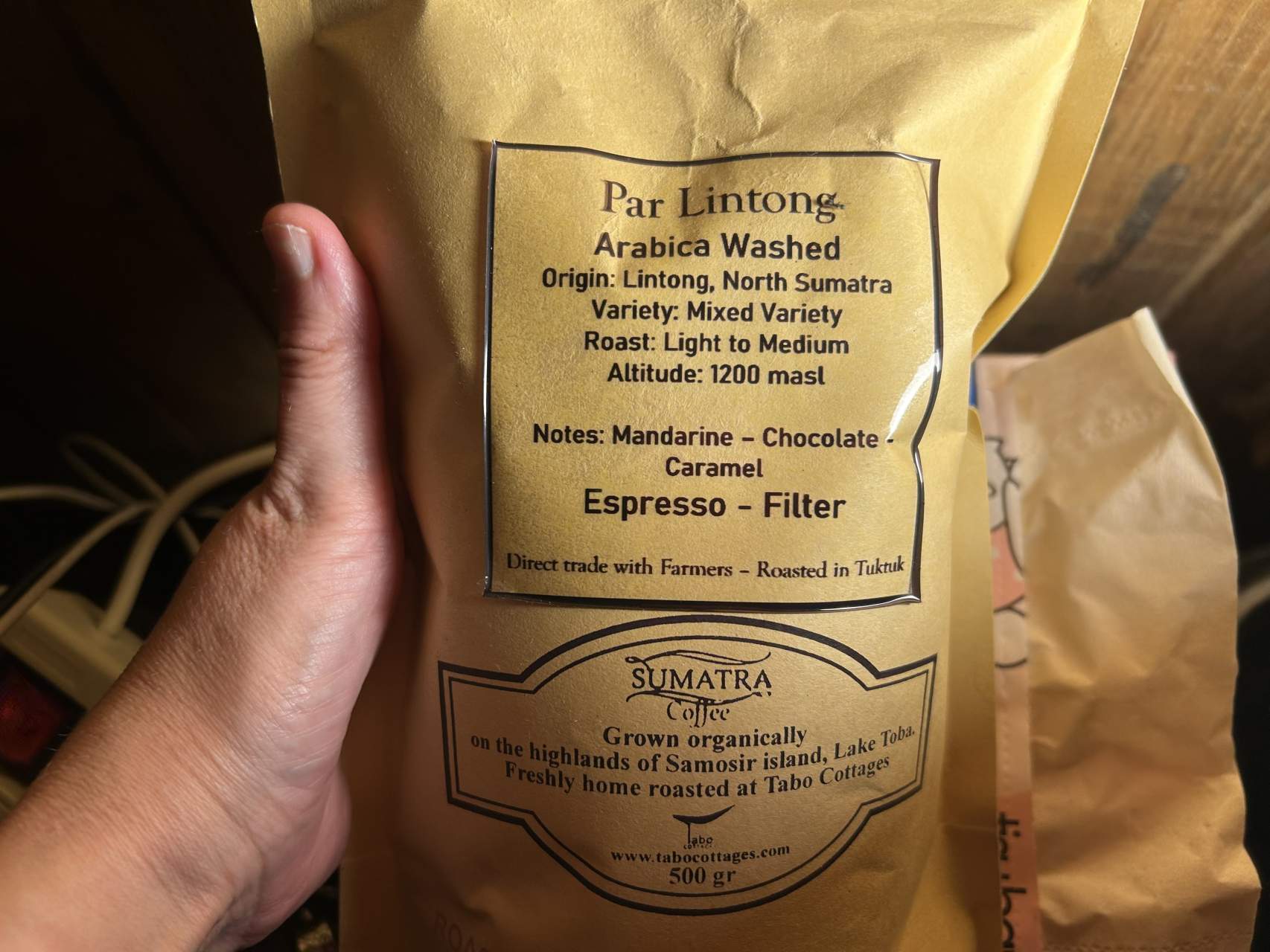 Из местечка Линтонг, Тоба. Это одна из самых известных зон Суматры: вулканическая почва, высота, влажный климат. Кофе там обычно очень богатый по вкусу.
