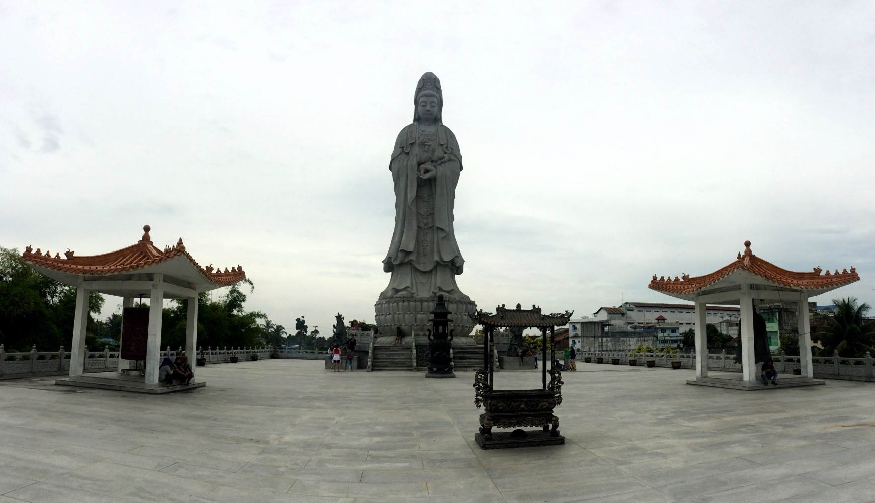 Так же не обошлось и без классических достопримечательностей. Сиантар славится тем, что здесь воздвигли буддийский храм и статую Аволакитешвары, прям вот так 22-метровая махина посреди мусульманского острова. Храм выполнен в виде китайской пагоды, с драконами и разными существами из цельного мрамора. Обычный кич, но сама идея впечатляет.
