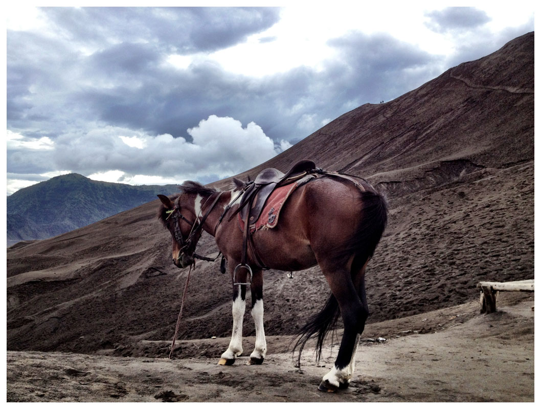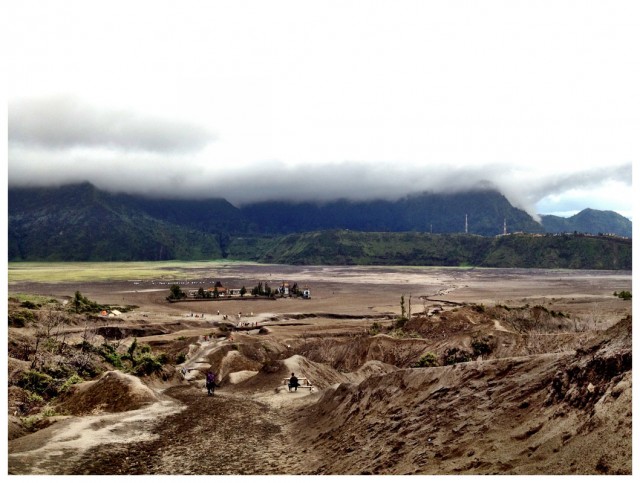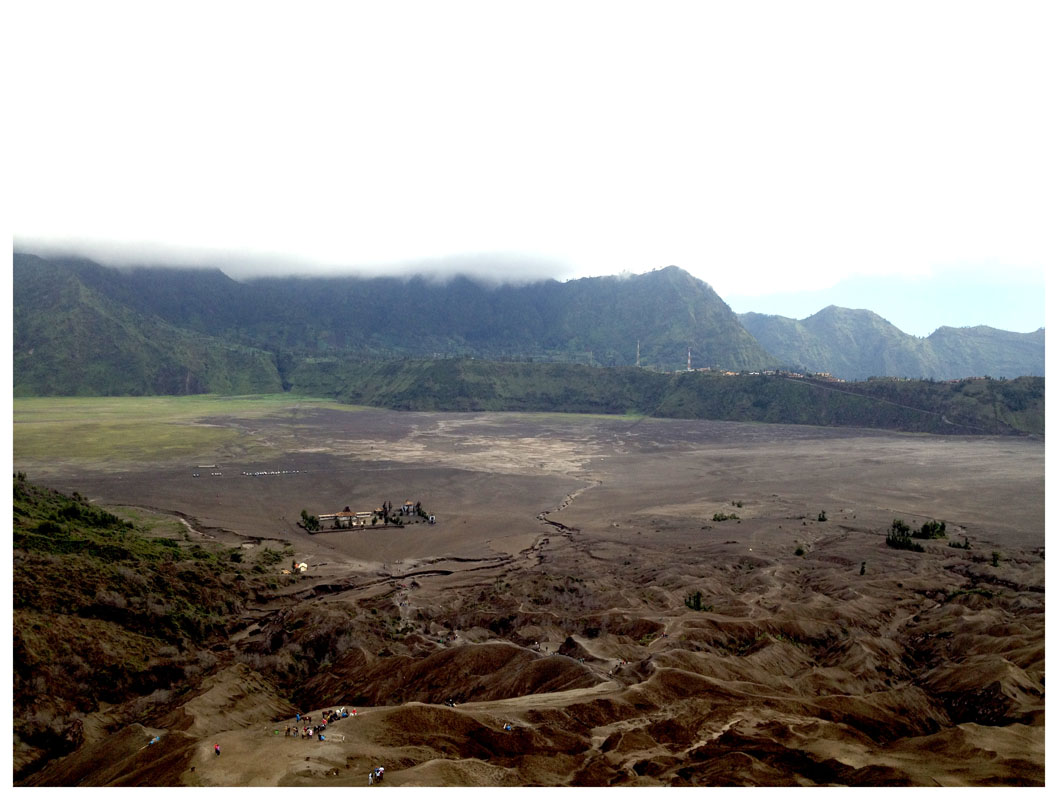От гостиницы в Джогьякарте прямо до вулкана доехали на прямой маршрутке в компании французских и голландских бекпекеров. Время в пути - 12 часов. Такой путь от Джогджи до Чеморо Лаванга стоит 16 долларов с человека, без гостиницы. Водитель подвезет к гестхаусу, который нужен, главное заранее сообщить в какой (их тут не так уж и много). Вчера ночью вселились в Cemara Imdah с видом на Бромо, утром нас погнали, так как у них была бронь на этот номер с 12-00 и больше свободных мест нет. Переехали в гестхаус Cafe Lava, недалеко от входа в нацпарк Bromo-Tengger-Semeru. В основном туристы приезжают сюда поздно вечером, утром смотрят рассвет и сваливают. Днем практически безлюдно, за исключением местных, продающих шапки редким замершим иностранцам.