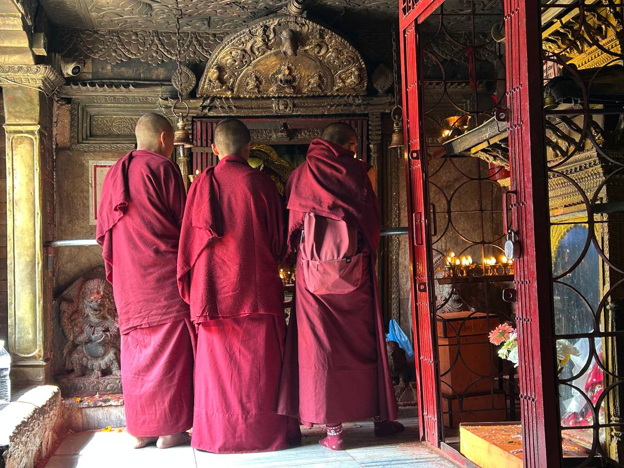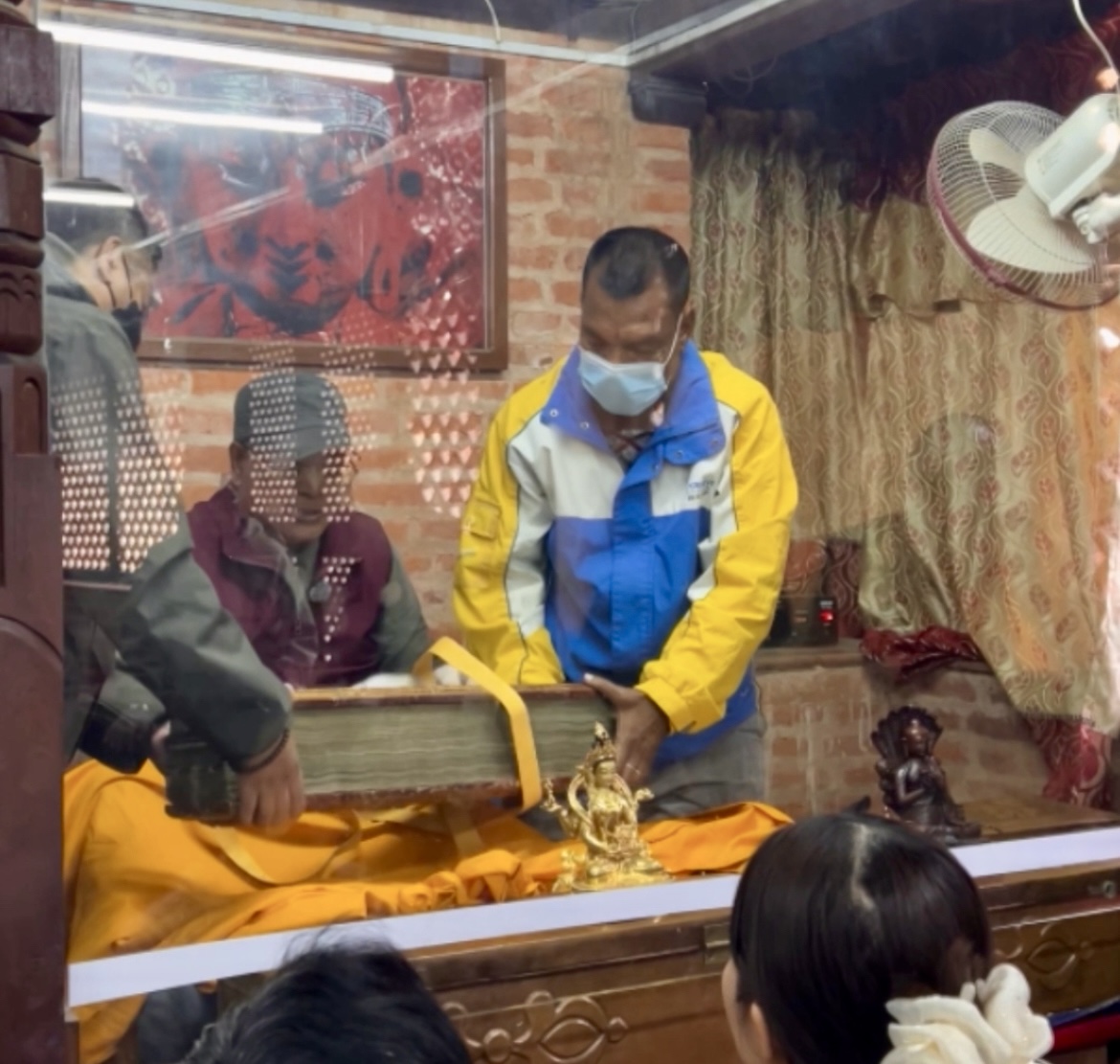 В 9 утра мы попали на вынос манускрипта и благословение текстом. Перед этим была почти часовая лекция на английском о самой сутре, о Нагарджуне, об Атише, Серлингпе (тот, что жил на Суматре), разных учителях, Дхарме, а так же о месте монастыря в истории долины.