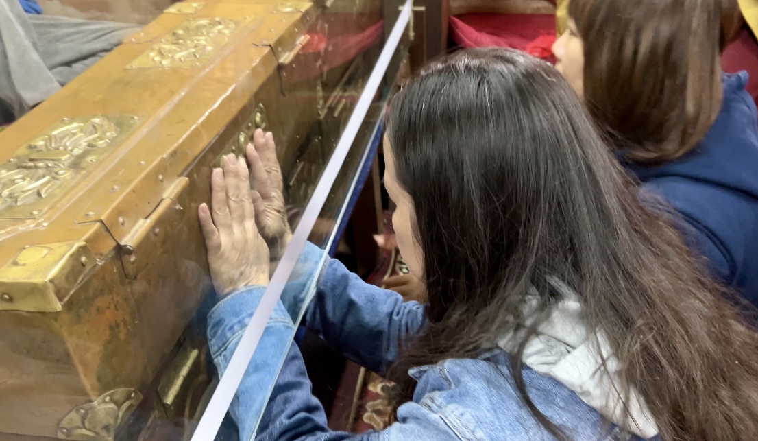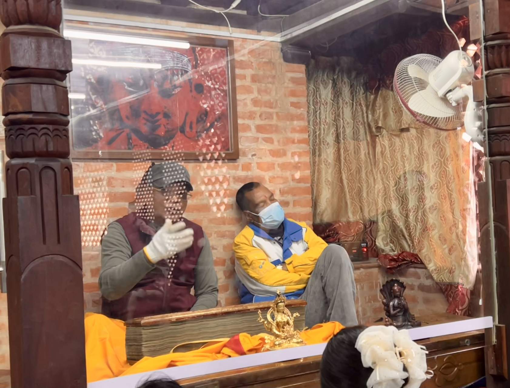 После того, как все вышли, мы попросили еще раз открыть сундук с одним из томов и благославить наши четки текстом напрямую, хранитель сначала отказал, но потом согласился, и в конце спросил: «Are you happy now?".