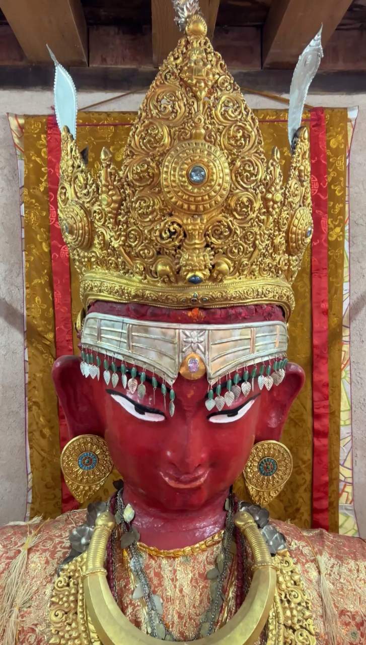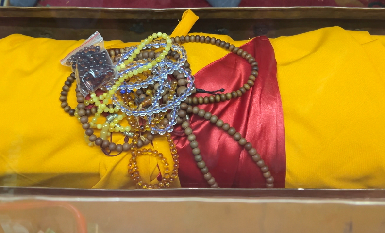 Внутри есть коллекция исторических объектов и артефактов: скульптур, реликвий и в том числе древние тексты. Среди них почитаемый манускрипт Праджняпарамиты, сутры «Совершенной мудрости» в нескольких томах. Его описывают как восьмисотлетний текст, написанный золотыми чернилами.