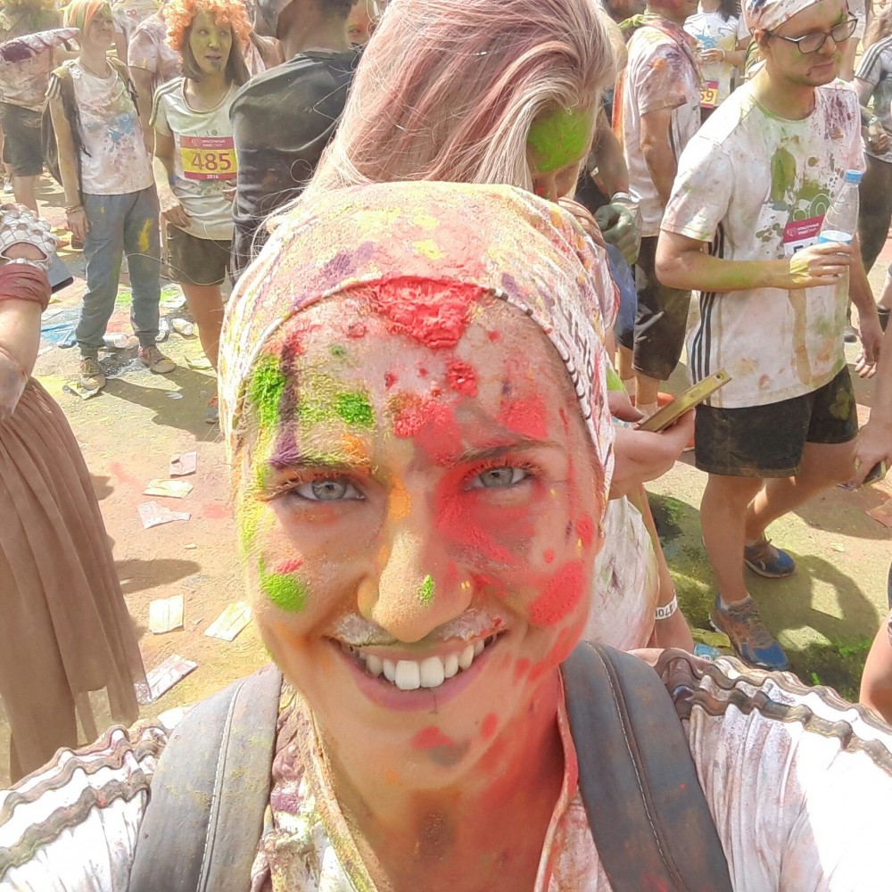 Честно говоря, никаких особых ощущений это не даёт. Правда, ты, наверное, посмотрела на эту мою селфи с красочного забега. Там у меня глаза вообще белёсые вышли. А так они обычные зелёные, иногда выглядящие как серо-зелёные.