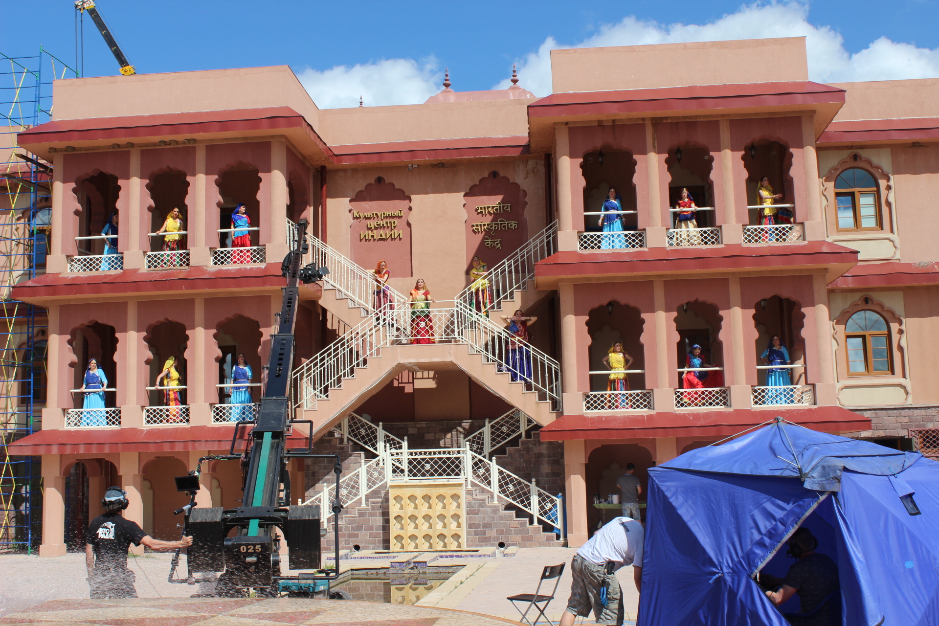 Как, наверняка, заметит намётанный глаз индостанца, снимали отнюдь не в Индии. Съемки проходили в "Этномире", культурно-развлекательном парке в сотне километров от Москвы, в котором выстроены здания в стиле разных стран и эпох. Нашелся там и индийский отель и культурный центр в раджастанском стиле. Нам очень повезло с погодой во время съемок: все два дня стояла теплая солнечная погода, и только изредка облака закрывали солнце.