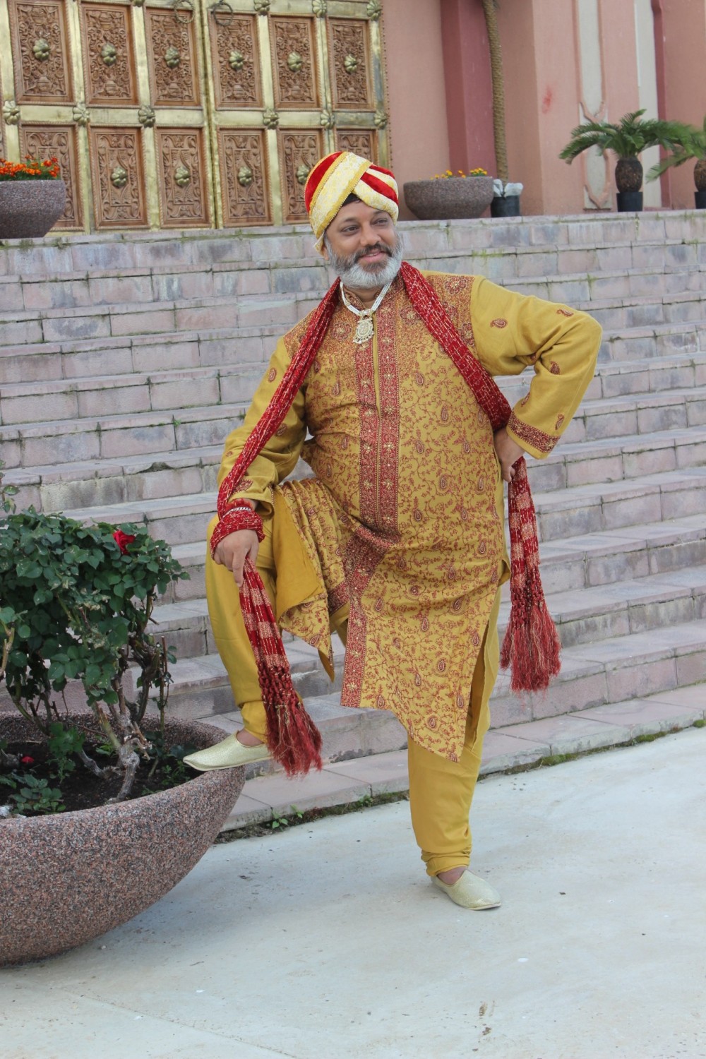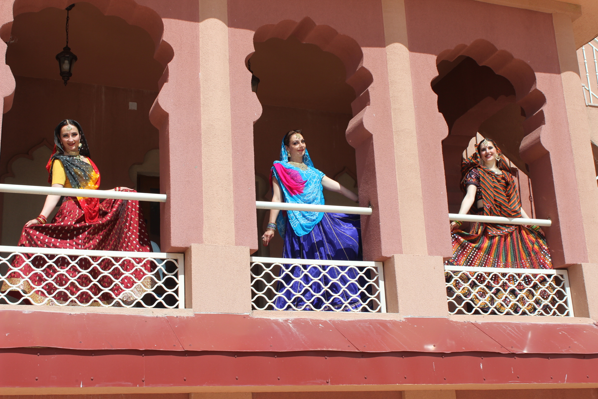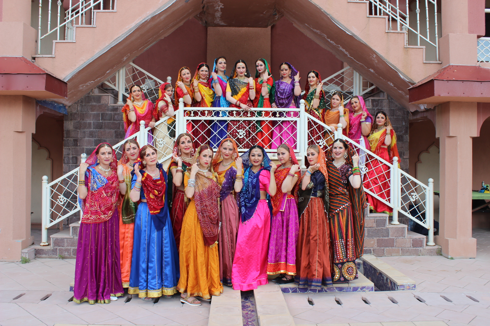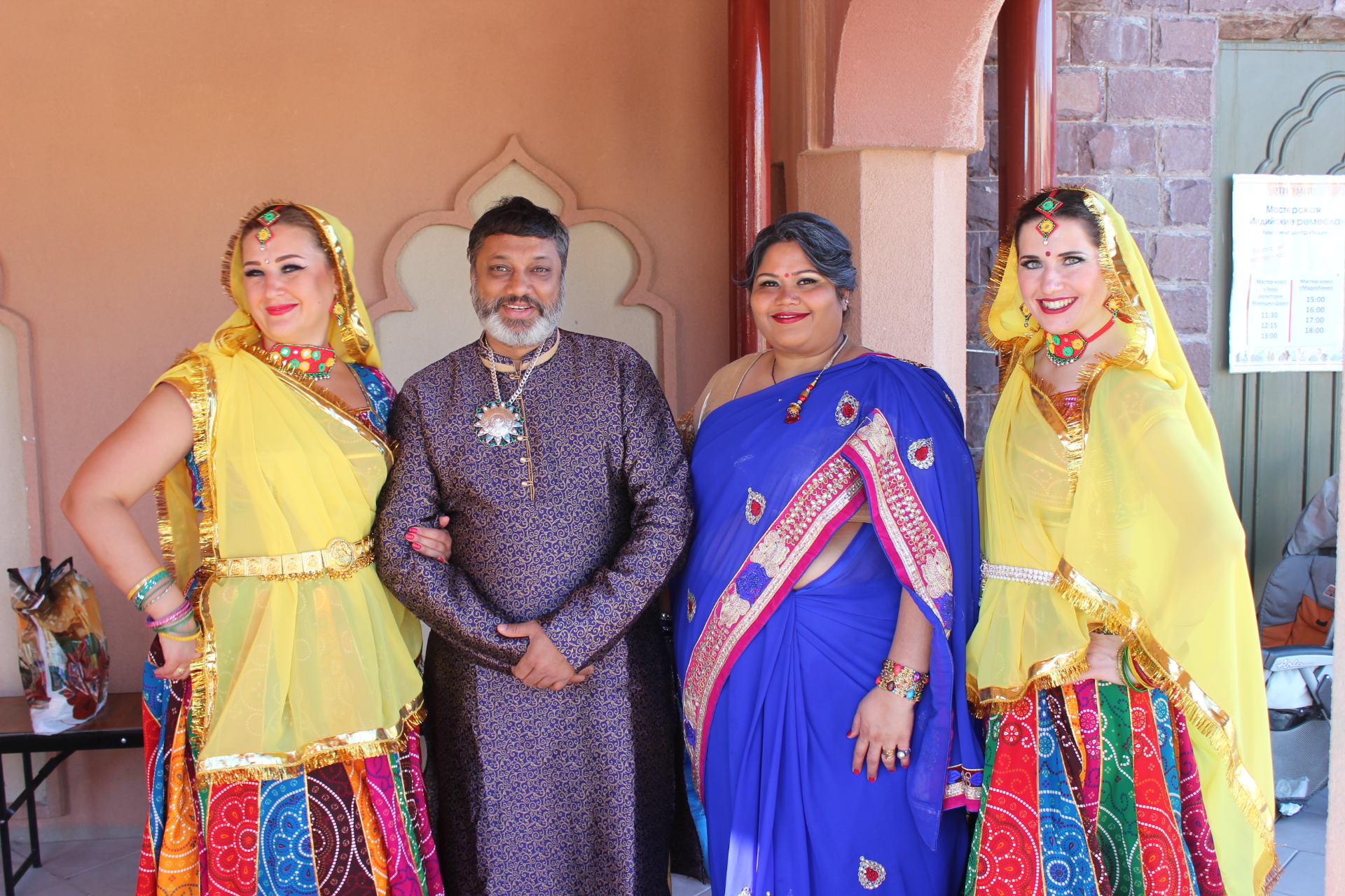 Мы все заехали накануне, потому что график съемки был довольно плотным. В 9 утра мы позавтракали, а потом сразу начали одеваться и гримироваться. В 11 утра у нас был час на репетиции, а потом сразу съемки. Мы были очень рады, что наши танцевальные заготовки понравились режиссеру. Сначала мы много раз репетировали, чтобы и Натали смогла танцевать с нами, а потом снимали много дублей. В общем, это все было несложно, но очень-очень утомительно, и совсем не танцами, а тем, что постоянно нужно ждать - то когда солнце выйдет из-за тучи, то когда на камере поменяют линзу. После обеда у нас было свободное время, во время которого мы много фотографировались - все при параде, да в индийских интерьерах. Во второй половине дня нам надо было переодеться в другие костюмы, но загрузка была совсем небольшая - нужно было фоном стоять, пока Натали гуляла по базару. К шести вечера наша часть съемок завершилась и мы пошли на ужин. И казалось, что вечером уже можно расслабится и отдохнуть, но не тут-то было. В половине десятого вечера мы все собрались на репетицию и ещё час в холле гостиницы отрабатывали движения на следующий день.