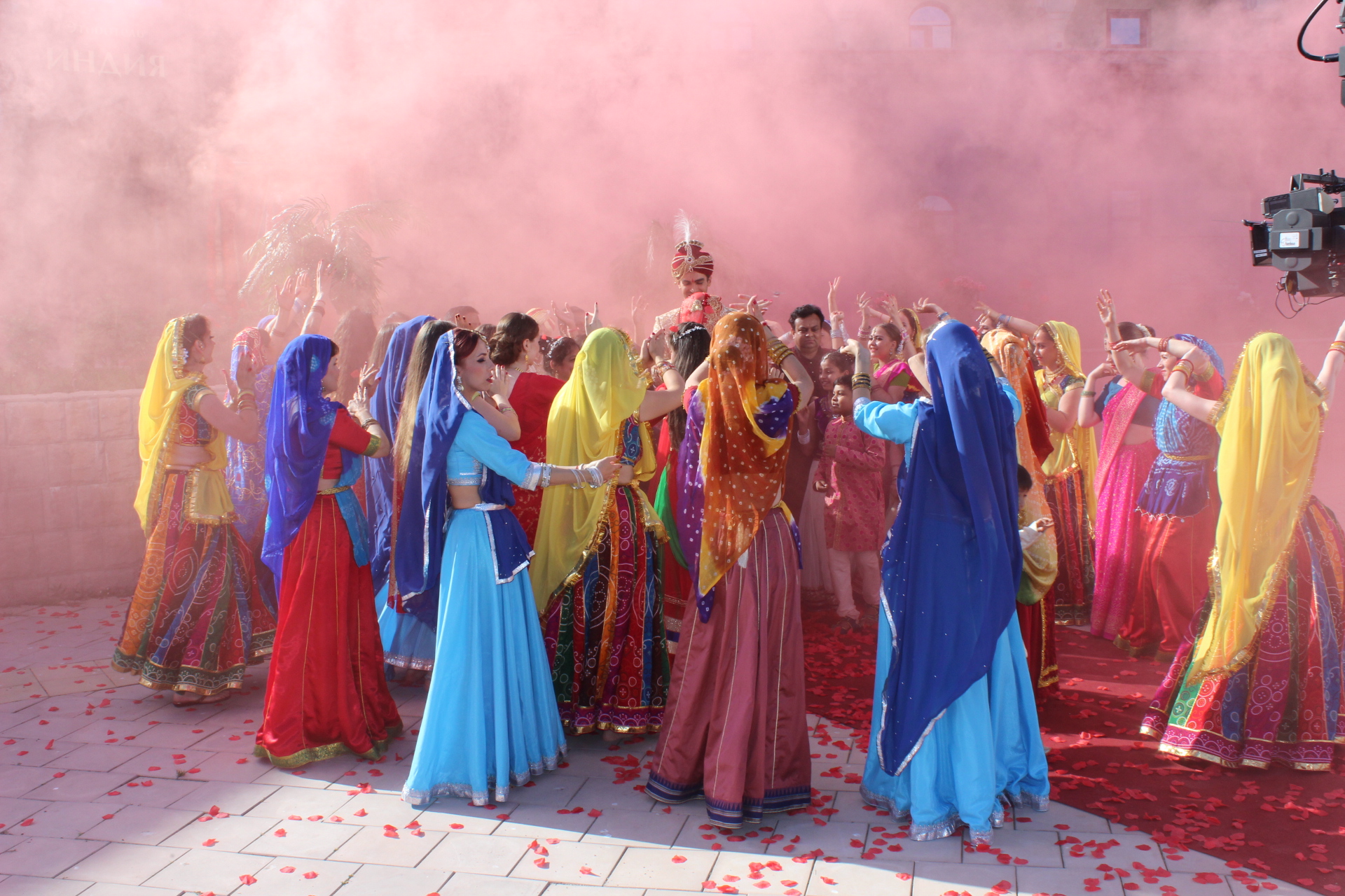После обеда подъехали ещё индийцы и русские девочки для массовки, которых нужно было быстро одеть в сари, накрасить и подготовить к финальной сцене - именно этим занимались больше часа лидеры нашего коллектива Елена Гришина и Ксения Андрианова. Сцена свадьбы одна из самых массовых во всем клипе. Там мы должны были встречать Натали, которую провожали к жениху, а все вокруг безудержно радовались и танцевали. Мы подготовили самую сложную танцевальную комбинацию для этой сцены, но это оказалось совсем не нужно. Режиссер попросил, чтобы мы все танцевали, как на дискотеке, радуясь за Натали. Мы обсыпали жениха с невестой лепестками роз, а потом пустили дымовую шашку, которая, по-видимому, должна была дать эффект типа Холи. Дым этот ужасно вонял, но со стороны смотрелось красиво.