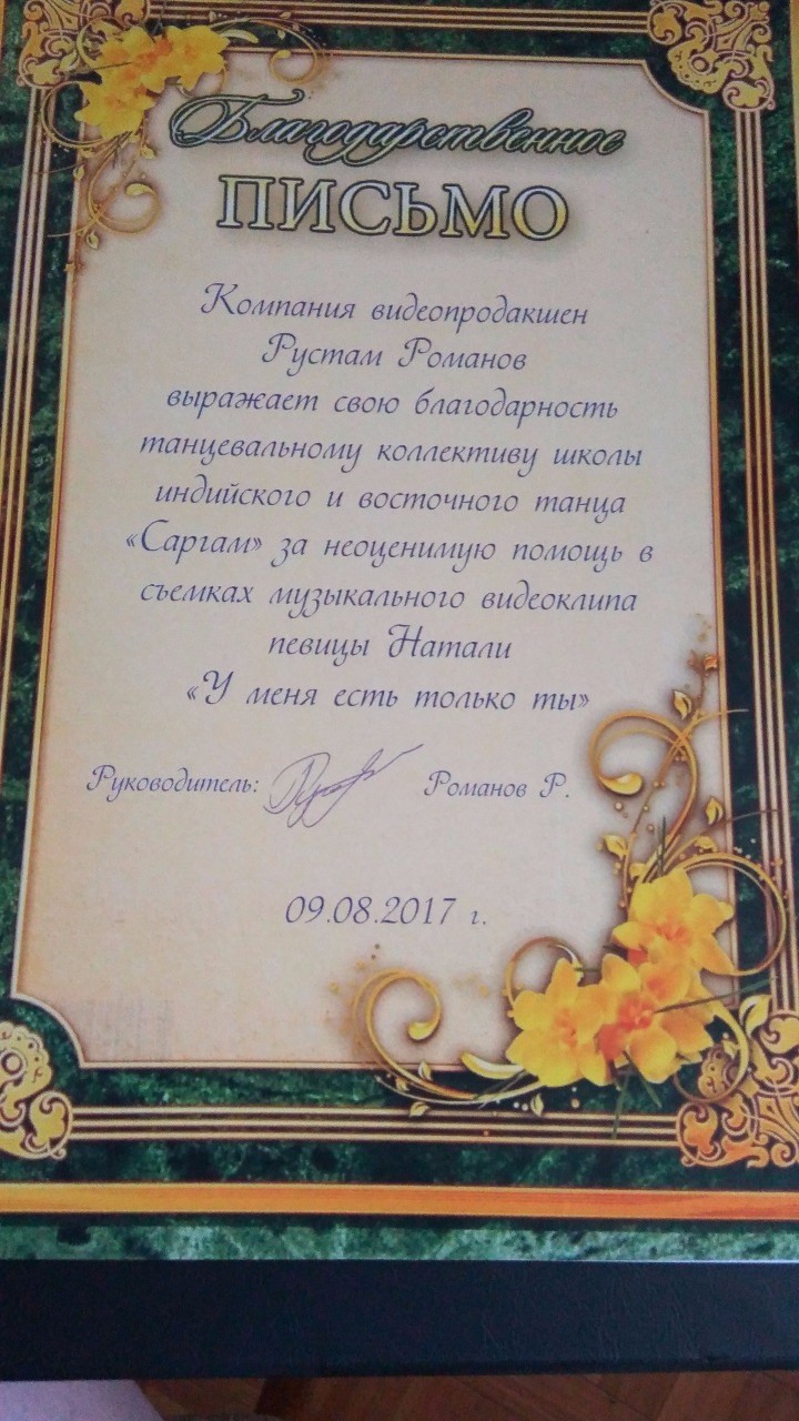По итогам, съемочная команда клипа была нами довольна, даже благодарственное письмо нам выписали. В отличие от индийцев, которые и здесь всегда опаздывали, мы всегда везде были вовремя, подготовленные, всегда готовые и к репетициям и к съемкам. Только в одном мы всё никак не могли справиться: режиссер регулярно кричал "не смотреть в камеру", но она прям как черная дыра засасывала внимание. Может, поэтому столько дублей и делали? Натали оказалась очень милой: ни с кем не панибратствовала, но стойко соглашалась фотографироваться со всеми индийцами.