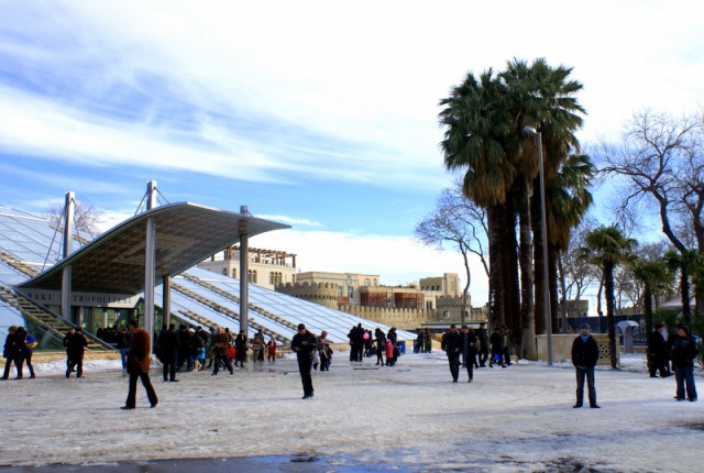Если посмотреть на карту Азербайджана, то можно увидеть птицу, которая раскинув крылья, летит на восток. А Абшеронский полуостров это клюв птицы, которая хочет вырваться из теснин Кавказа на просторы Каспийского моря. Самой популярной версией происхождения слова «Абшерон» является «соленая вода». Конечно вода в Каспийском море соленая. И здесь на побережье расположен город Баку. Раньше город был интернациональным и гостеприимным. Гостеприимность осталась, но в метро вас будут с интересом рассматривать, как в китайском Сиане или индийском Джайпуре.