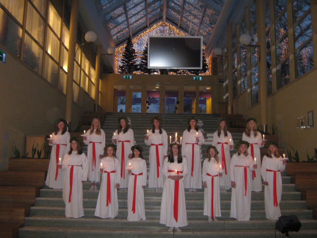 Вобщем непонятно кого и что мы чествуем в День Люсии. Но традиция эта крепка. Зародившись в Западной Швеции- Восточной Норвегии она распространилась по всей Швеции, а также Дании и Финляндии. С 1927 года происходят выборы и «коронование» Люсии. Есть своя Люсия в каждом детском саду, школе, городе.
