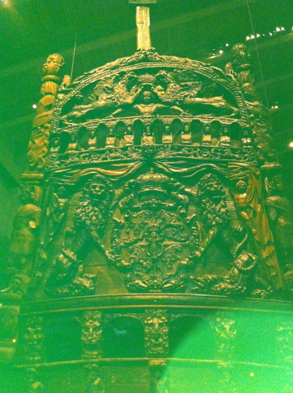 Король звался Васа, и его корабль - тоже. С одной стороны, корабль был задуман как боевой объект и должен был иметь дополнительную палубу для пушек, с другой стороны-все корабли того времени должны были выполнять и функцию плавающего дворца. Поэтому корабль украсили огромным количеством вырезанных из дерева и ярко раскрашенных фигур. Мифы того времени( германского происхождения), библейские сюжеты, и уже упомянутые мной римские императоры украсили самый большой корабль того времени.