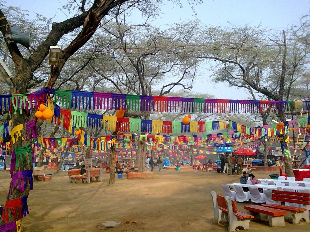 Специально для этого ежегодного фестиваля в окрестностях озера Сураджкунд («Озеро Солнца»), недалеко от Дели, построена «дизайнерская деревня Сураджкунд» с более чем 350 стилизованными павильонами-в дни фестиваля здесь можно купить разнообразные изделия кустарного производства из шелка, камня, дерева, металла, кости и т.д.