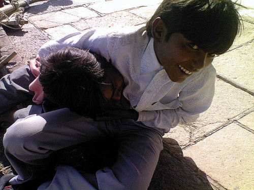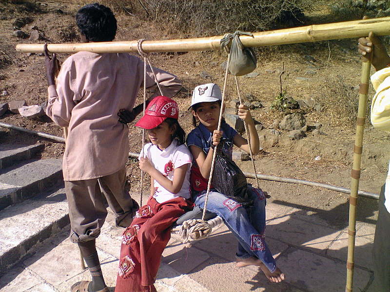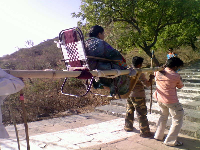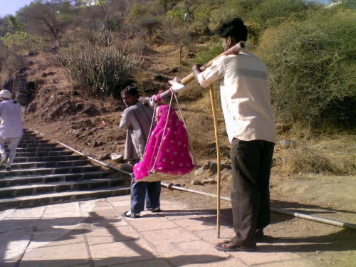 Здесь процветает бизнес "доли"-двое или четверо человек могут отнести вас на импровизированных носилках на холм за 400 рупий,но для нас этот вариант слишком прост.