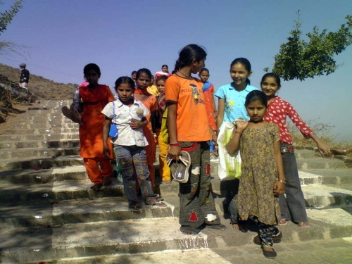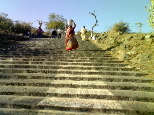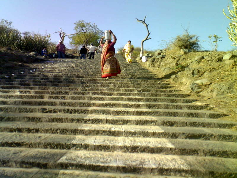 Рано утром в Гуджарате уже печет солнце.Мы отправляемся на холм,где расположены 863 джайнских храма.Нам предстоит преодолеть "Небесную Лестницу" в 3950 ступеней.