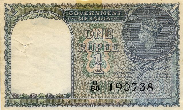 одна индийская рупия 1940 года