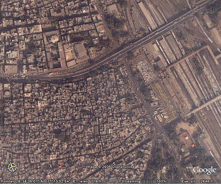 "Особый интерес" представляют, как правило, различные населенные местности. На "общих" картах детальные снимки выглядят как своеобразные "квадраты" или их скопления - это означает, что данный фрагмент местности можно "приближать" с помощью прилагающихся навигационных инструментов и в итоге увидеть дома и дороги. Участки с низким разрешением при сильном приближении дают просто размытые пятна (в Eatrh) или (в Maps) сообщение о том, что снимков данного "уровня приближения" (zoom level) в распоряжении Google нет.