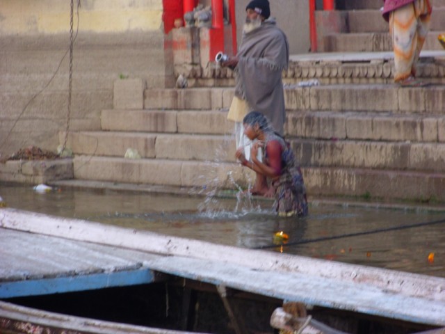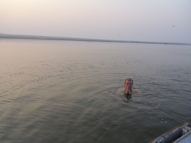 Понравилась вечерняя пунджа на Ганге. Церемония с огнями, колоколами и пением. В утреннюю пунджу взял лодку за 100 Rs. Когда проплывали по середине Ганги, я решил окунуться в святую Гангу, будь что будет, если выживу после, значит жить мне еще. Те кто видел своими глазами поймет, так как когда читаешь, что в Гангу сбрасывают тела, нечистоты и все остальное, то это одно. А когда видишь и нюхаешь все это, то становиться жутко от одной мысли дотронуться до Ганги.