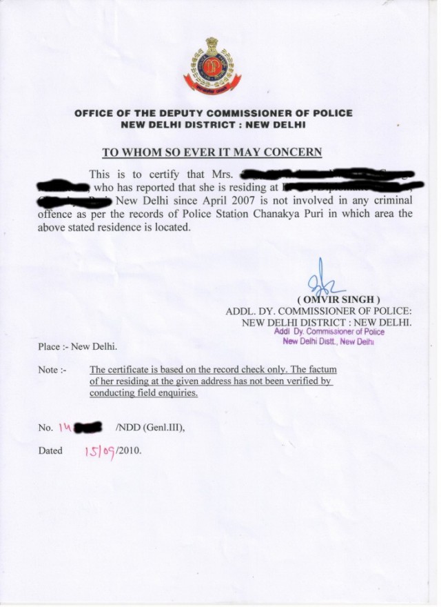 Не совершил ли мол каких либо преступлений, пока пребывал в Индии.раз уж вы уехали из Дели (думаю, что не надо было это делать), то попробуйте взять справку из местной полиции о том, что вы не в криминале. Скажите, что такую справку потребовали в делийском ФРРО для оформления exit permit. Образец справки (понятно, что адрес должен быть ваш фактический)-