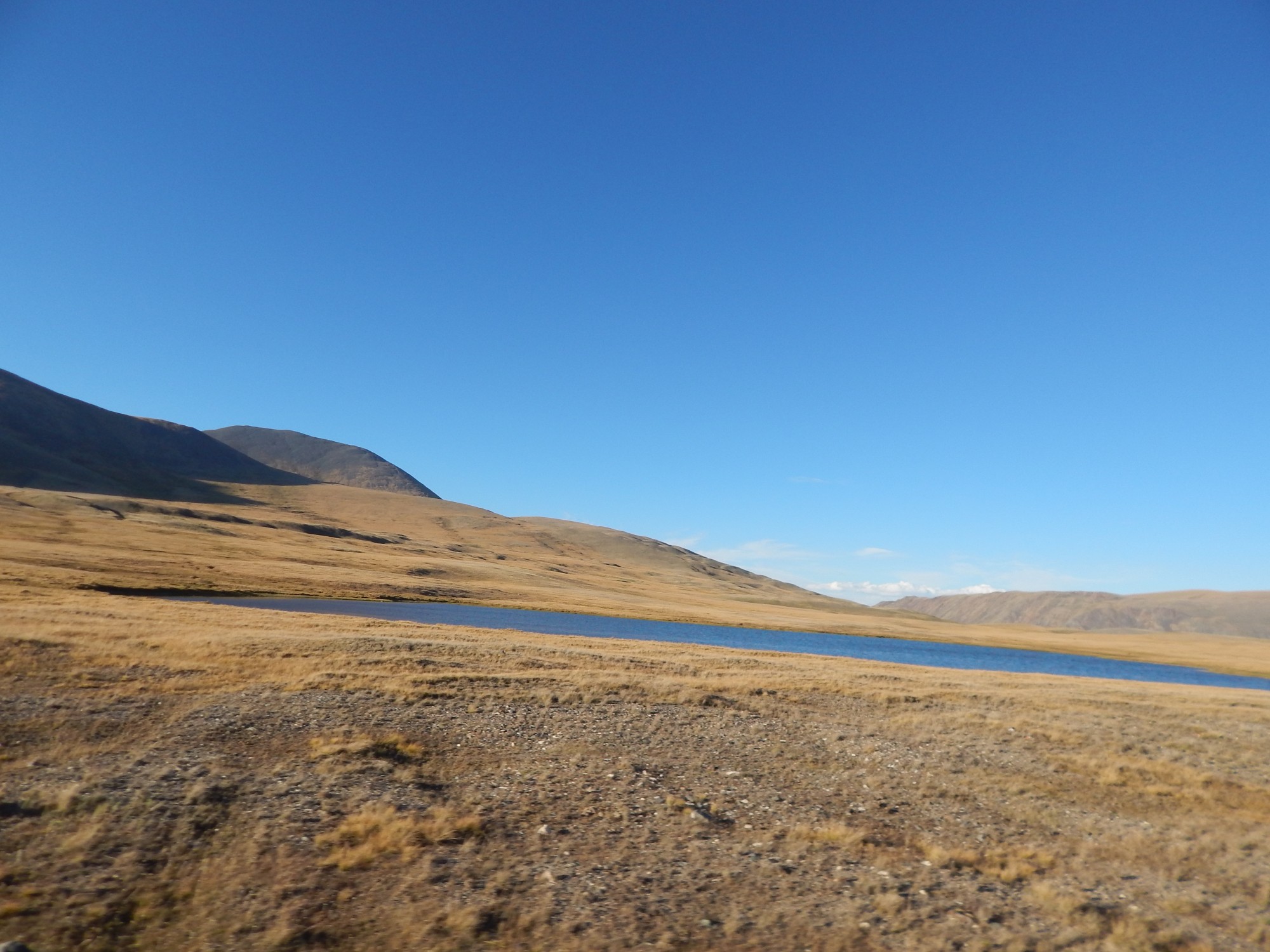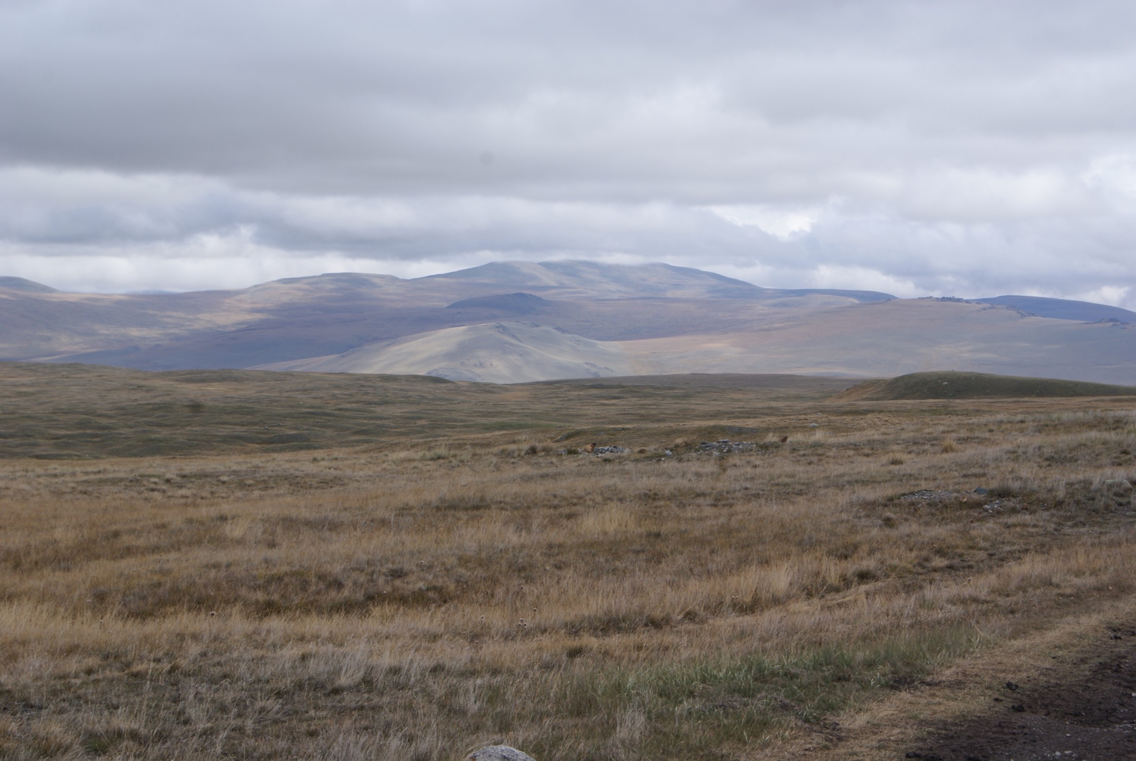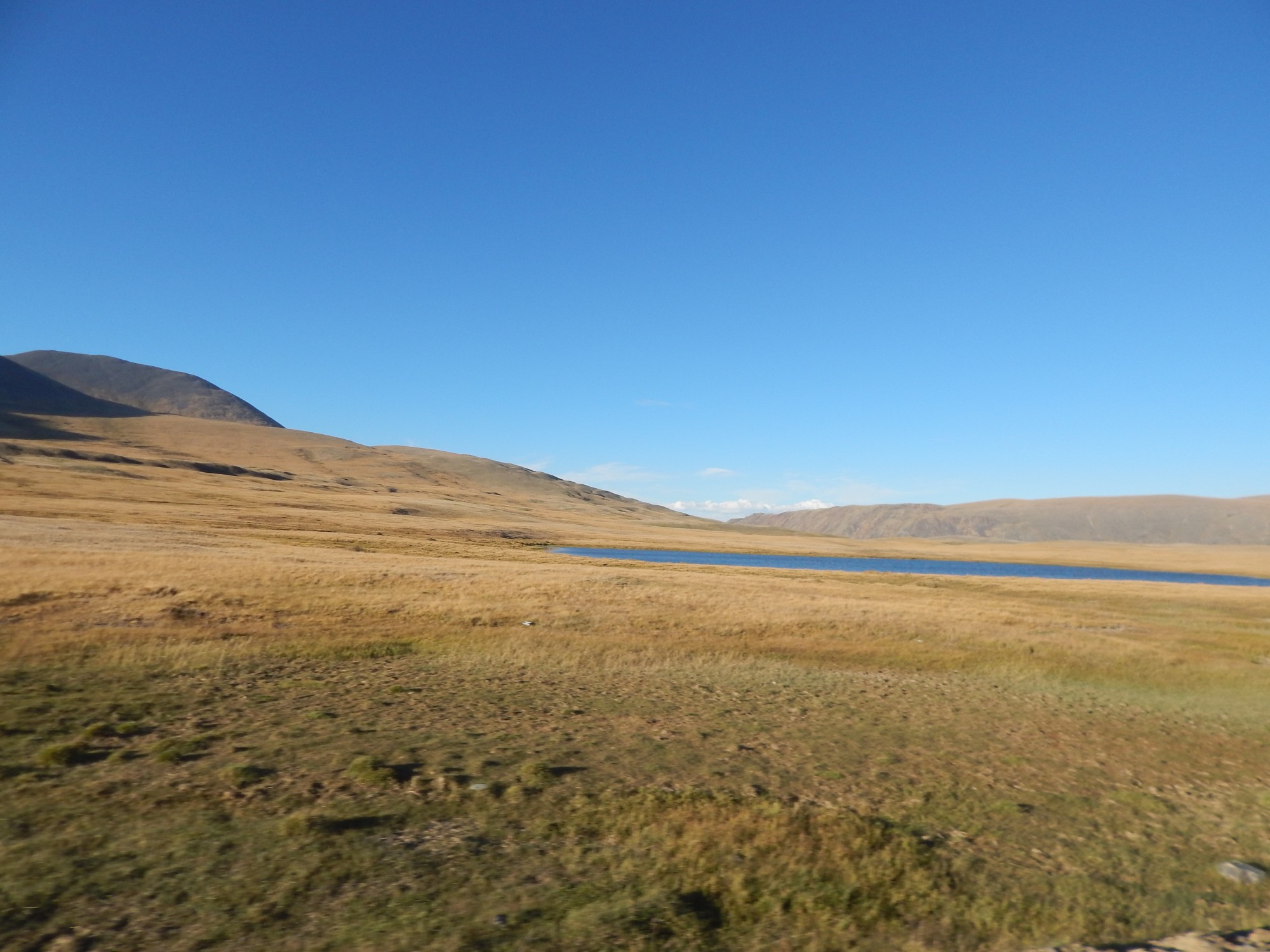 Я стал способен (под таблеткой, ессно) посматривать по сторонам. Но смотреть было особо не на что: пологие холмы, чахлая травка, суслики... ну, коршуны, их высматривающие. Правда, время от времени справа возникали снежные вершины. Я вроде даже узнал Актру и хребет Маашей, знакомые мне по горному походу с Н.Н. Роцким в 2001 г.