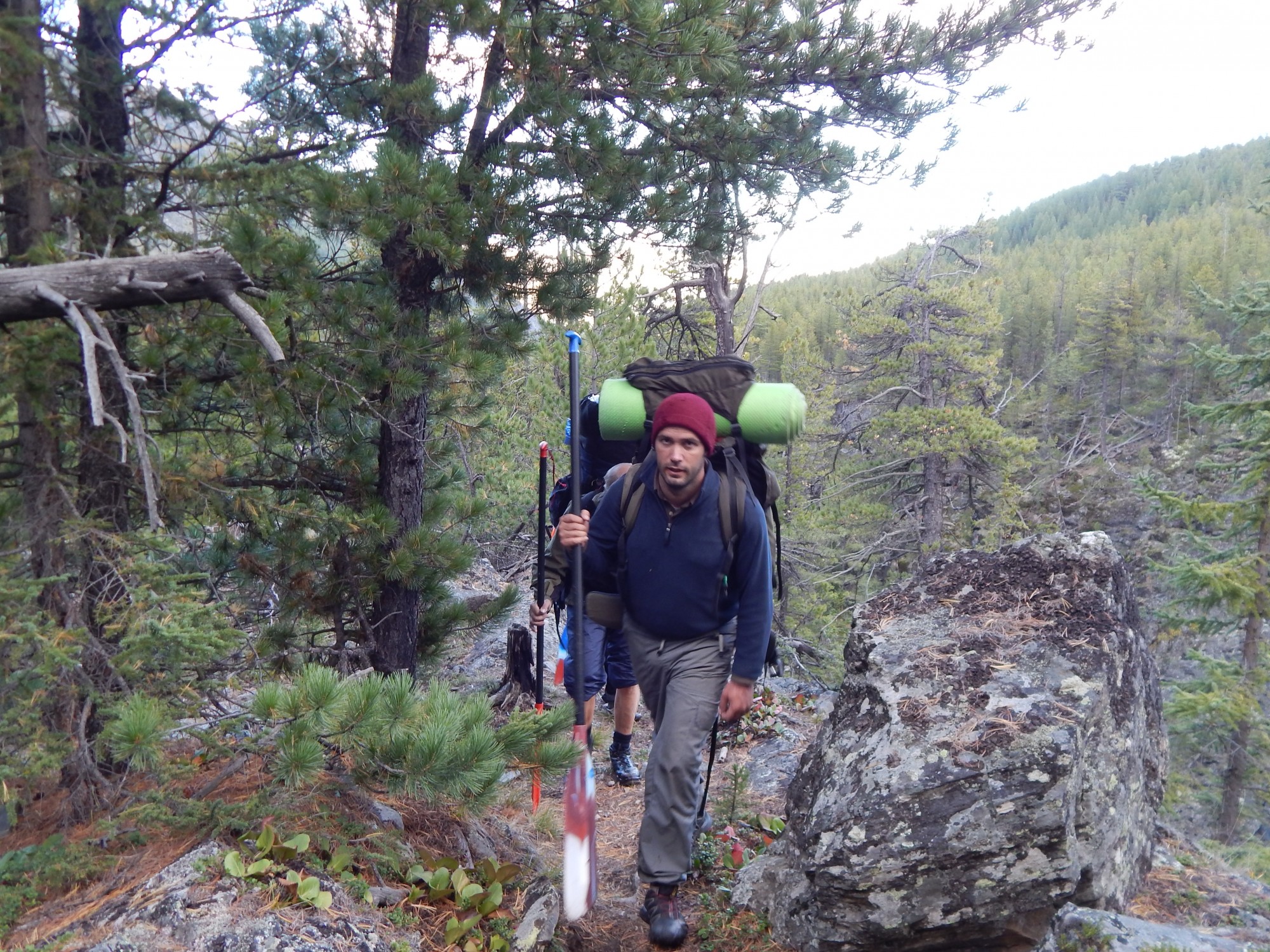 У Джона (нас в походе трое Евгениев, решили, что я буду Евгеньич, Женя Л. - Джон, а барнаулец Женя останется Женей в свои 54 года) чудом оказалась запасная пара тапок, но