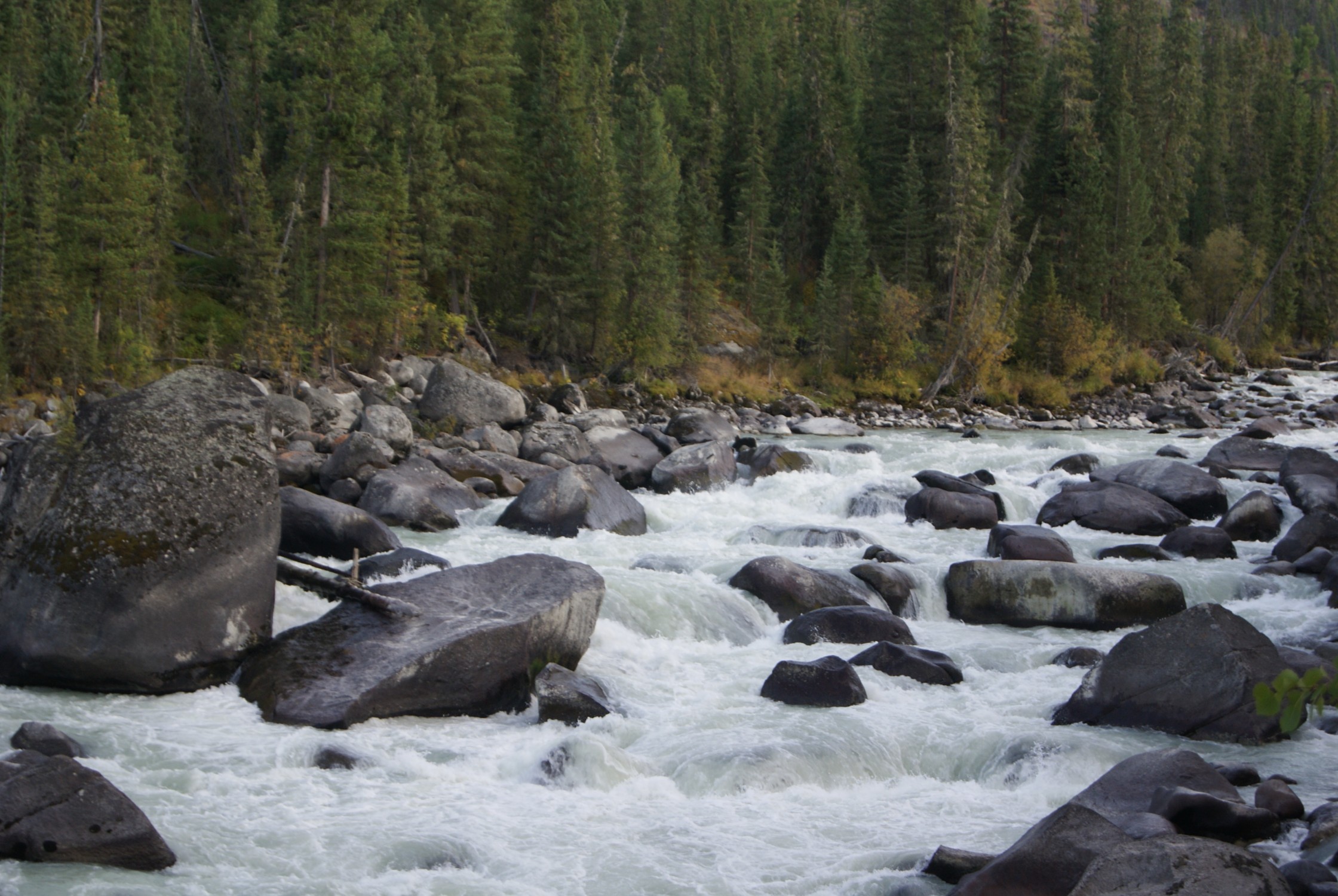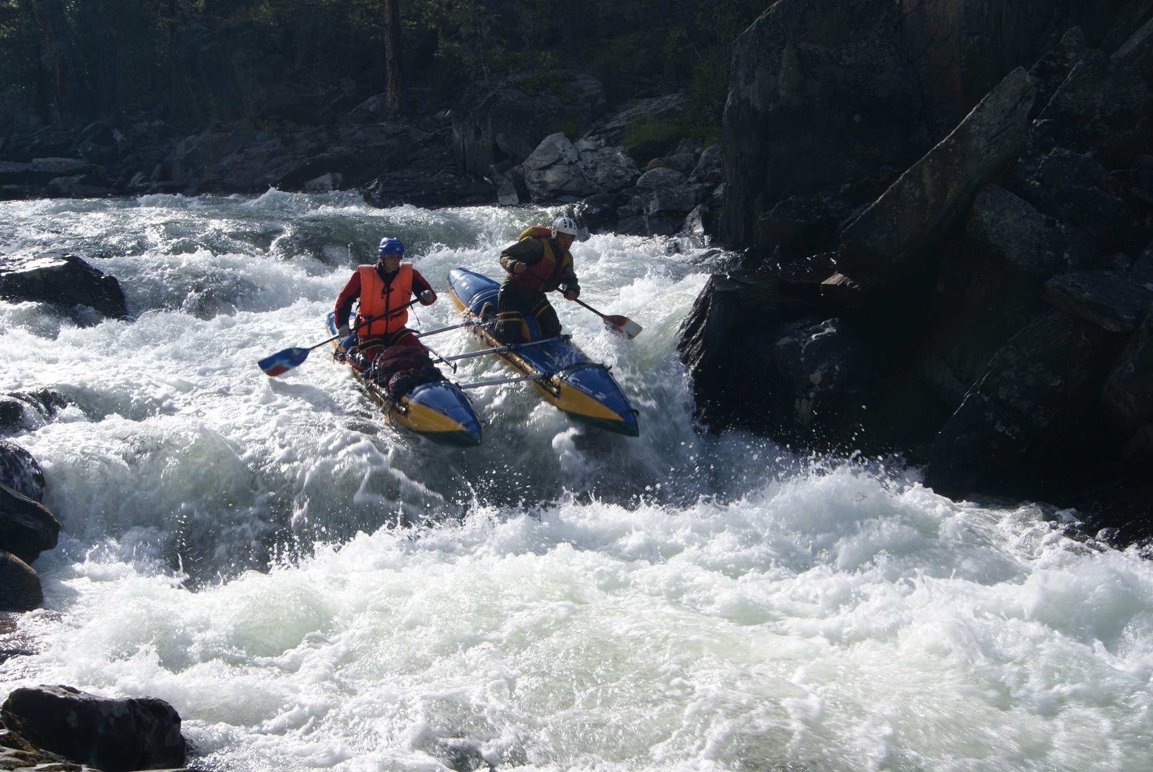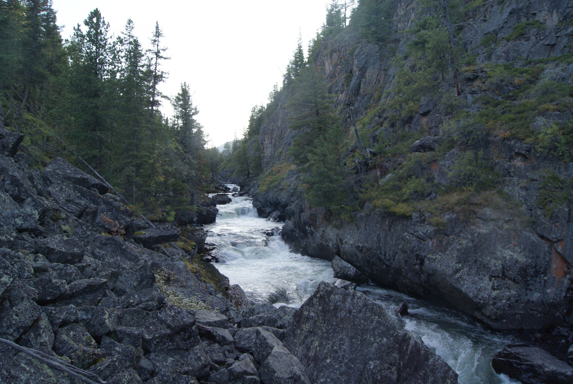 В результате гребу не глядя, Леха орет: «Куда, нах!...» - мы чуть не вылетаем на 2-метровый валун в пол-русла. Табаню изо всех сил, расходимся в сантиметрах.