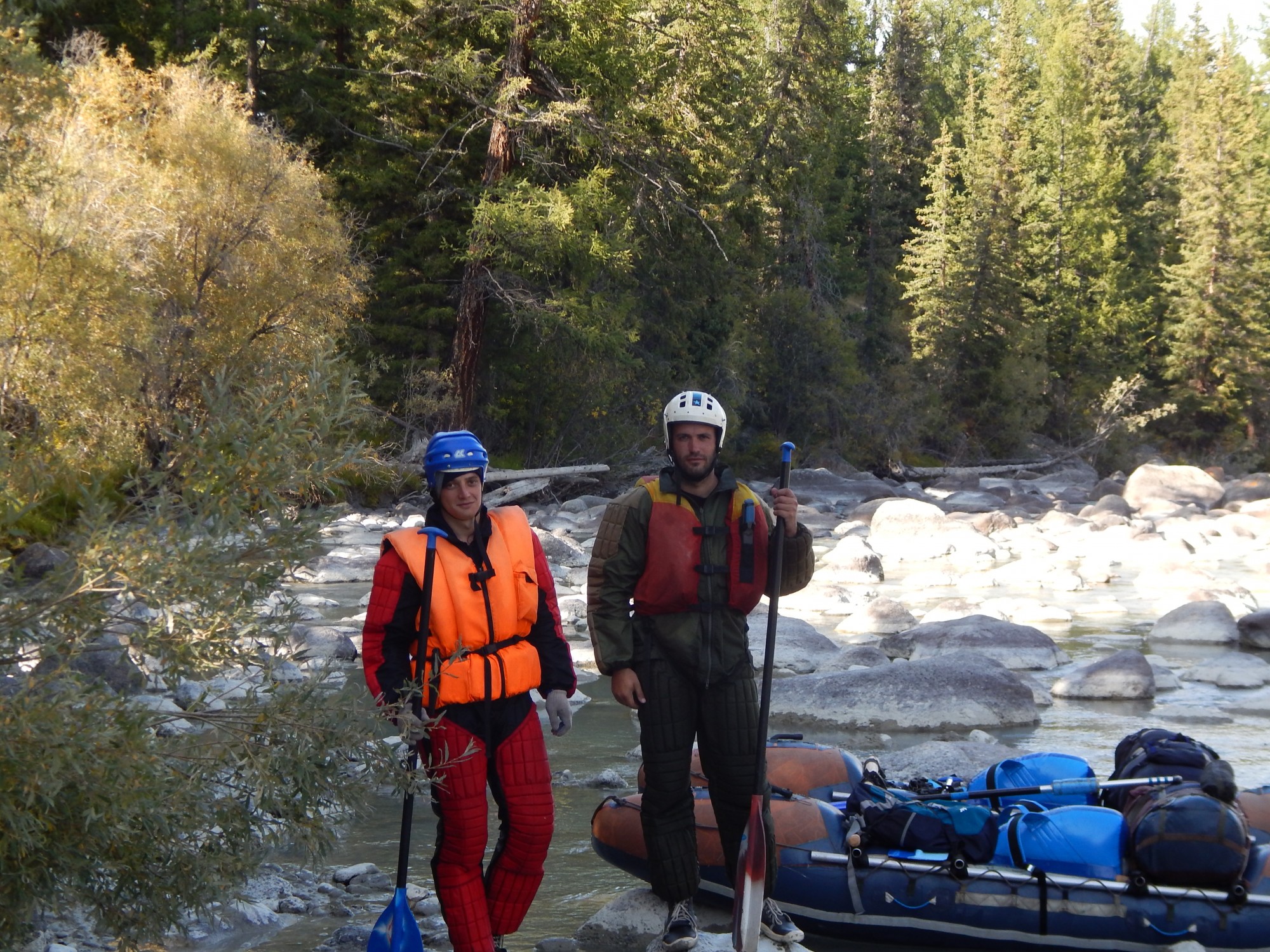 Снова камне...опинг, но ботинки привязаны на ТРИ узла. Они скользят, я падаю... Вообще у блондиночки неплохо получается: то большие уклоны и крупные камни (крутой нрав) – страшно и надо обносить вещи. То – плоскость и нет течения (успокоилась, но...). Но есть куча камней, и крупных. Сейчас кат приходится по ним перетаскивать. С грузом. Прости поганцев, Гоша, но приподнимать выше уже сил нет...Задолбала блонда.