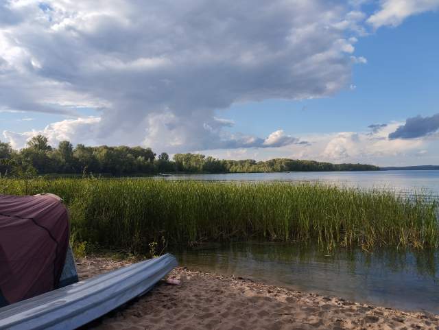 В этот день Вселенная наградила нас шикарной безветренной погодой (внезапно)) и душевной безлюдной стоянкой, спрятанной в камышах на дальнем конце острова. Здесь мы сделали днёвку, бездельничали, готовили вкусный обед, такое чудное место, не хотелось его покидать.