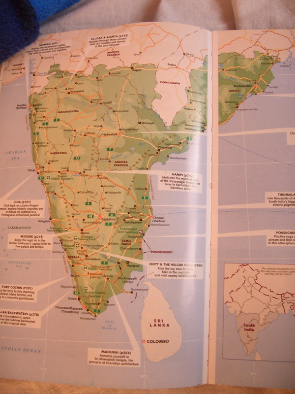 Вашему вниманию предлагается практически новый путеводитель по Южной Индии (на английском языке) на 540 страницах, в котором вы найдете ответы на все вопросы, связанные с самостоятельным путешествием по Южной Индии: карты, история, культура, питание, проживание, проезд, а также цены (в диапазоне от бюджетного туриста до люкс). В путеводителе отписаны такие штаты как Гоа, Керала, Карнатака, Тамил Наду, Орисса, Андаманские острова, Андра Прадеш, Махараштра, а также мегаполисы Мумбаи (Бомбей) и Ченнай (Мадрас).