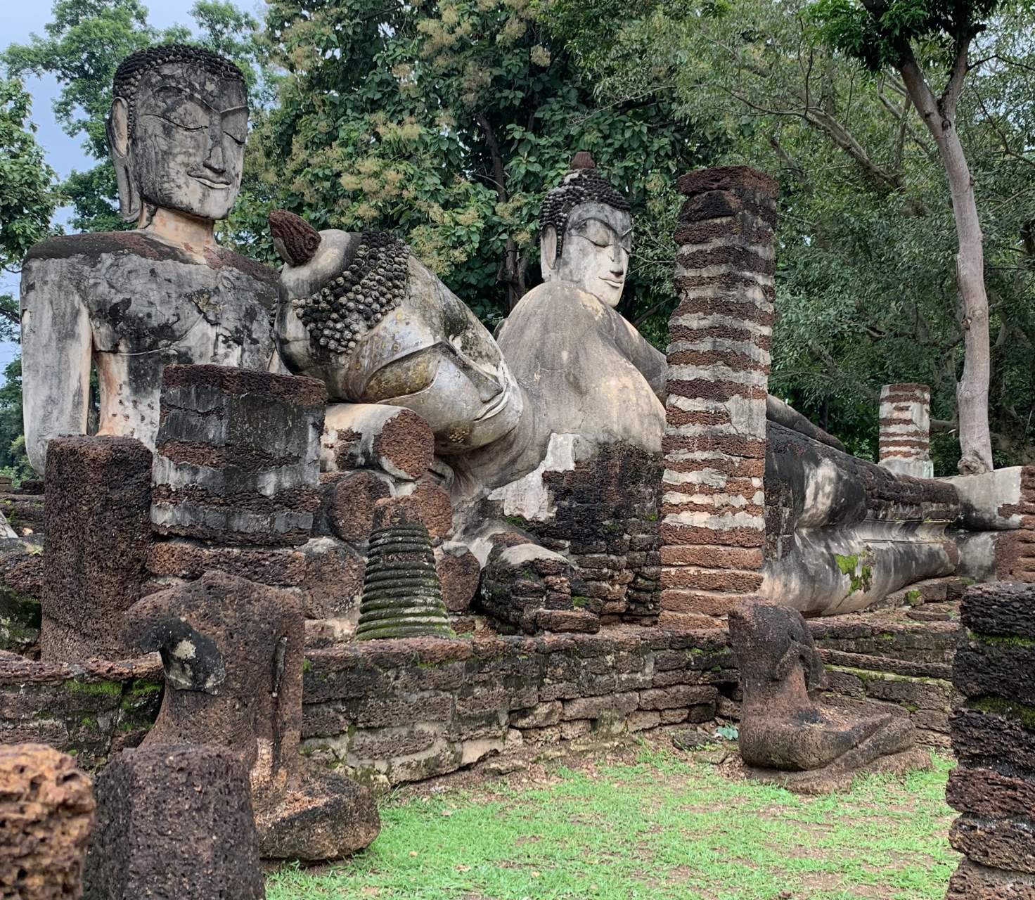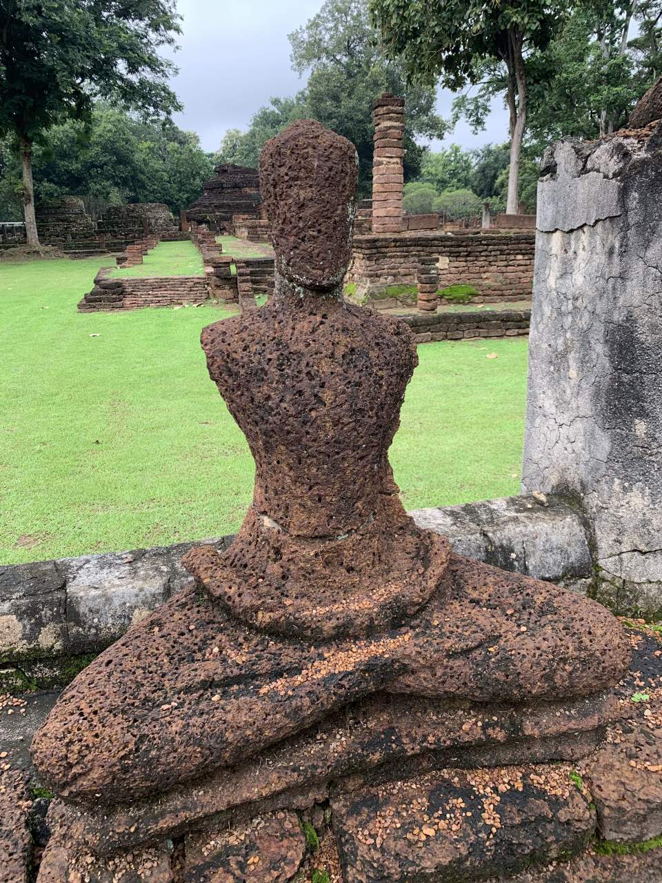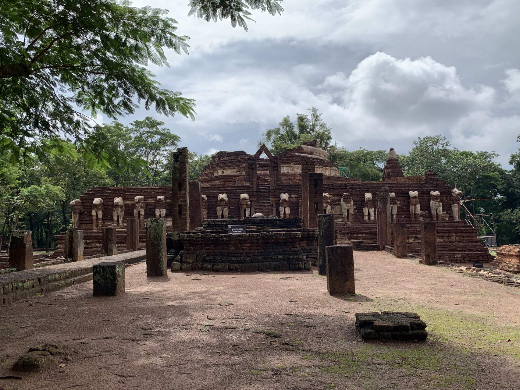 Чтоб вы не думали, что я только сплю, ем и сижу в кафе по полдня, хотя куда уж без этого, поделюсь впечатлениями от похода в местный храм, который на поверку оказался в списке культурного наследия Юнеско. Пришла я уже поздно - в три часа дня и какое то время мялась на входе. Билет стоил 100 бат, на небе собирались тучи и все было непонятно. В итоге решила пойти, понадеявшись, что из за погоды народу будет немного, да и ходить в 25* без припекающего солнца над годовой, гораздо приятнее.