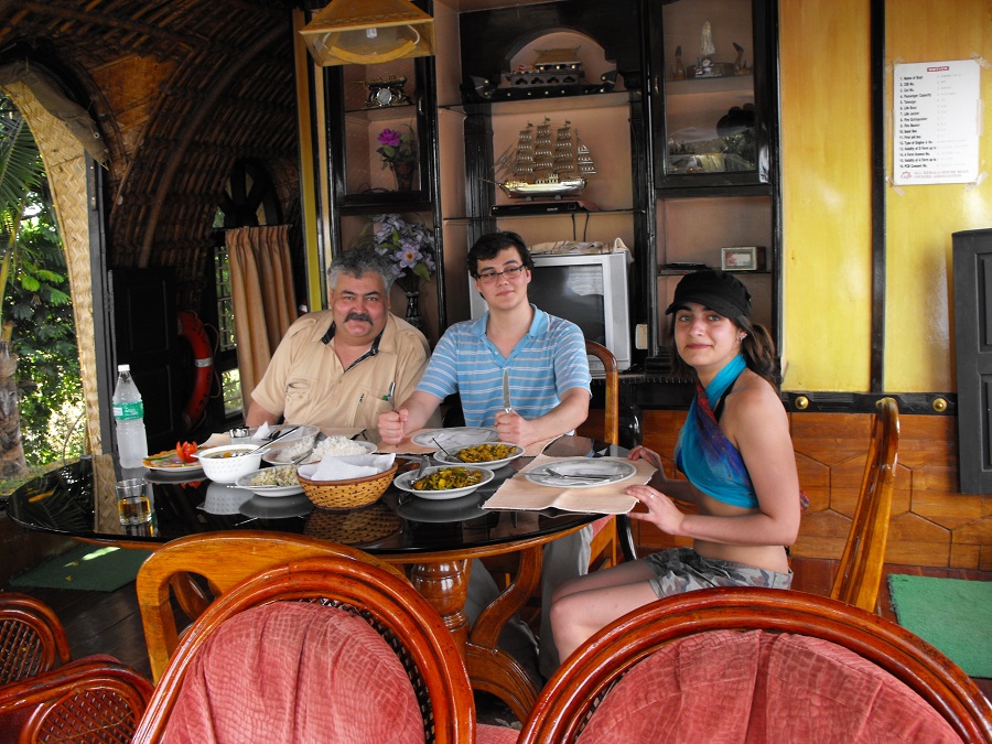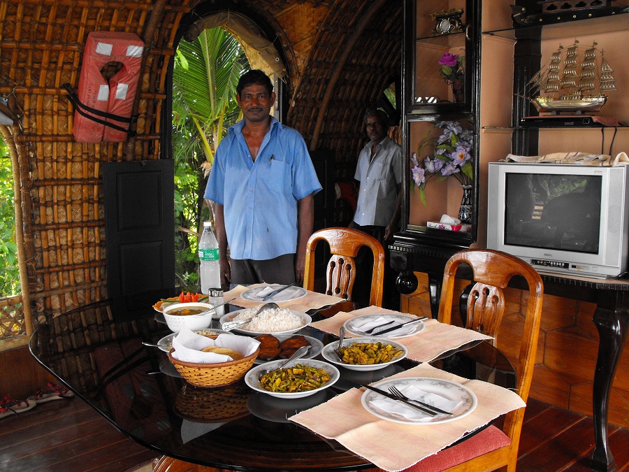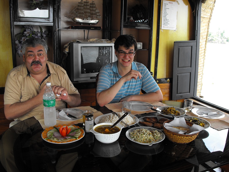 20) Памятуя об обеде, решили ужин на самотек не пускать. Еще до окончательной стоянки попросил экипаж пристать к берегу там, где чем-нибудь торгуют. О, это они с радостью. У каждого есть брат, дедушка, двоюродный племянник, на худой конец – друг, у которого все самое лучшее и дешевое. Кто был, тот знает. Но базарчик оказался неплохой: по рекомендации кока купили омаров и голубых крабов. Вот тут, как говорится, дал маху я. Вместо того, чтобы сфотографировать их живыми, а потом торчать над душой на кухне, я продолжил сахибствовать. Результат – на фото. Человек с сильным воображением, конечно, отличит лобстера от краба. Но по вкусу это не сильно отличалось от обильно наперченных рыбных палочек. Если и утрирую, то только самую капельку. Не фанат я индийской кухни. Спасла дело заранее припасенная местная виска, вполне достойно поддержавшая дубайско-шотландскую. Завтрака я попросил совсем не готовить, только кофе для дамы и черный чай без сахара и, упаси Бог, специй – для нас. У богатых свои причуды – пожали плечами они. Планировался плотный английский завтрак.