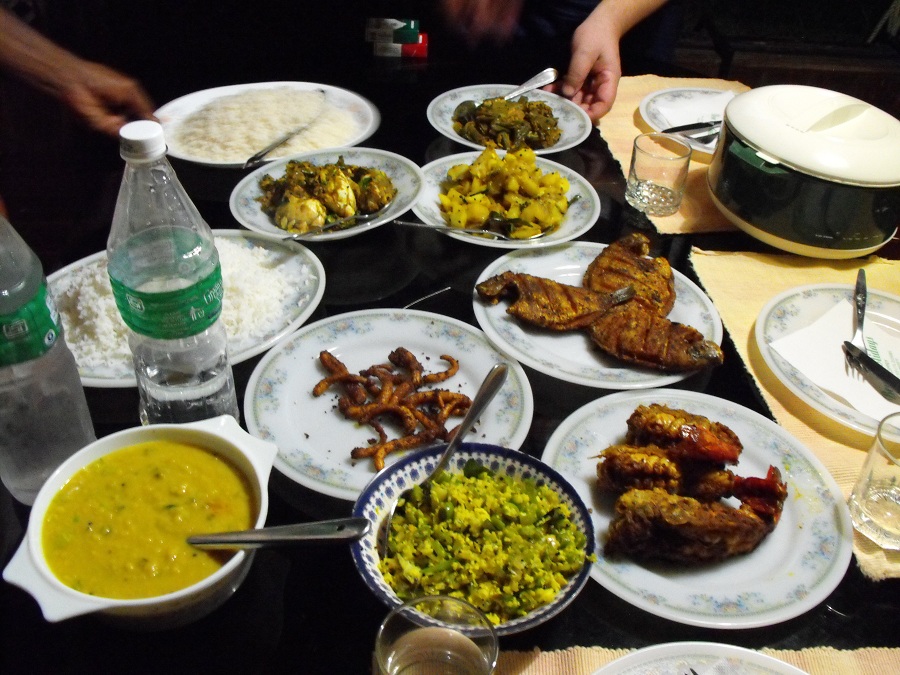 5) Отведали соуса... К чему слова... И так все видно. В результате почти все съели, кроме риса (невозможно столько съесть!) и соуса (понятно). Из вежливости. Благо, у нас с собой було... Рыбка, кстати, была ничего. То, что она малость «подрумянилась» - это даже хорошо, если подумать, ГДЕ ее могли поймать... Могу понять поклонников индийской кухни умом, глазами и носом, но желудком... вкусовыми рецепторами... печенью... С носом тоже вопрос. Как начнут прокаливать пальмовое масло, а потом туда добрый стакан семян горчицы, да чтоб трещать начало – хоть святых выноси. Еще раз извините, если кого обидел, не мое это, не мое.