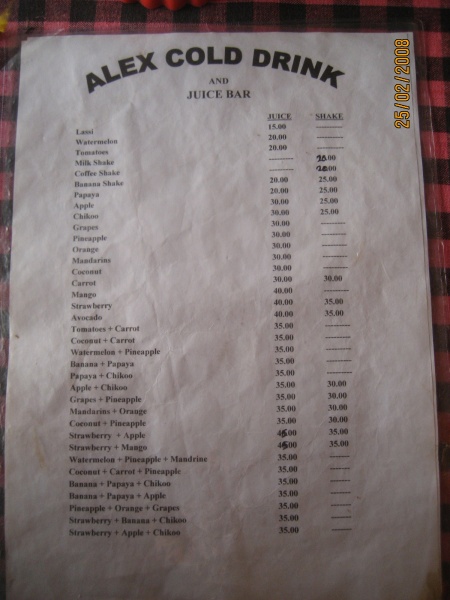 Южная Индия и Гоа › Цены, еда ГОА |