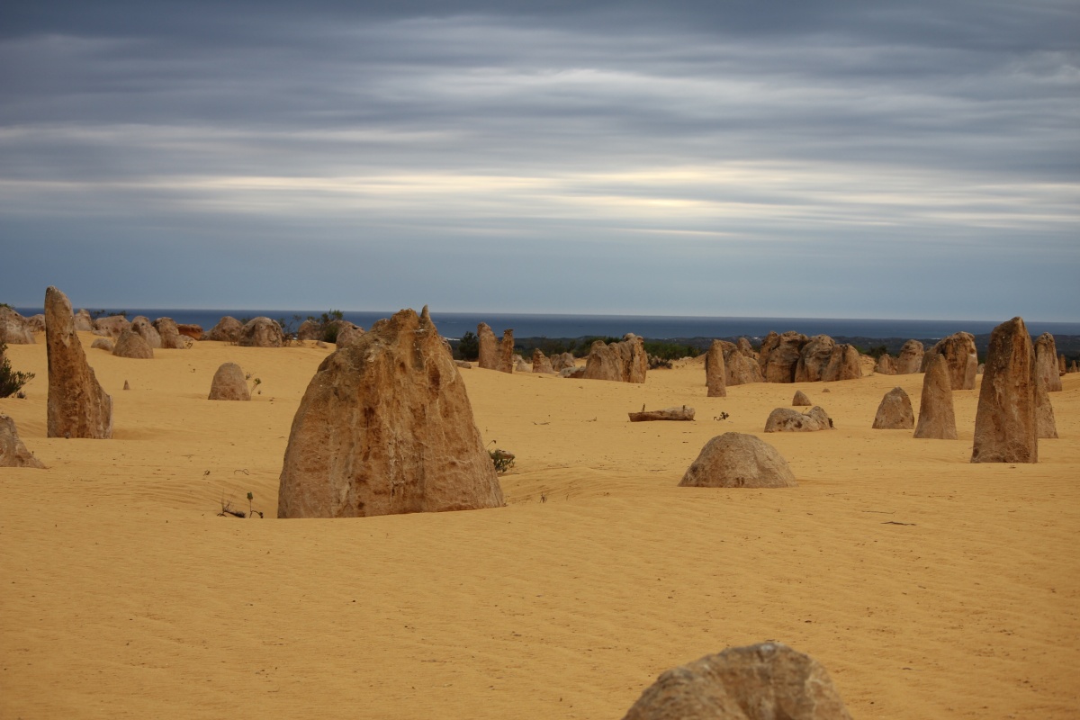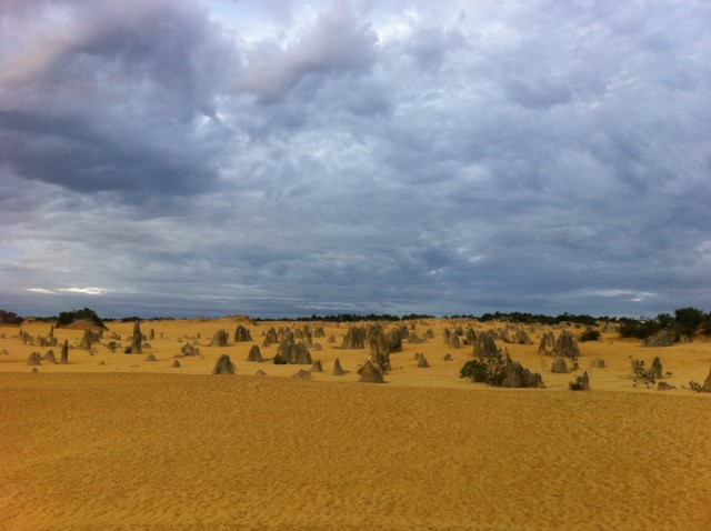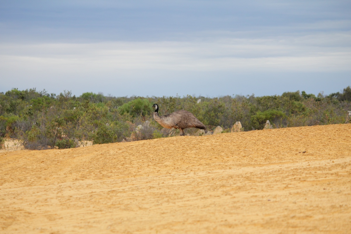 Близился закат и мы двинулись дальше, в пустыню Пинаклс. Сильные ветры западного побережья вытесали из песчаника причудливые конусообразные камни, усеявшие песок как грибы. Пинаклс облюбовали и страусы. В отличии о дружелюбных кенгуру, страусам было спокойнее держаться подальше от людей, так что я на собственном опыте убедилась, как они быстро бегают ( до 70 км/час), попытавшись добраться до них с фотоаппаратом.