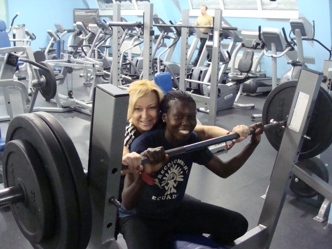 6го пошли оздоравливаться в спортивный клуб. Абиба встала на беговую дорожку и стойко бежала минут 50! Дело в том, что она – спортсменка и раньше бегала марафон и участвовала в африканских международных играх.